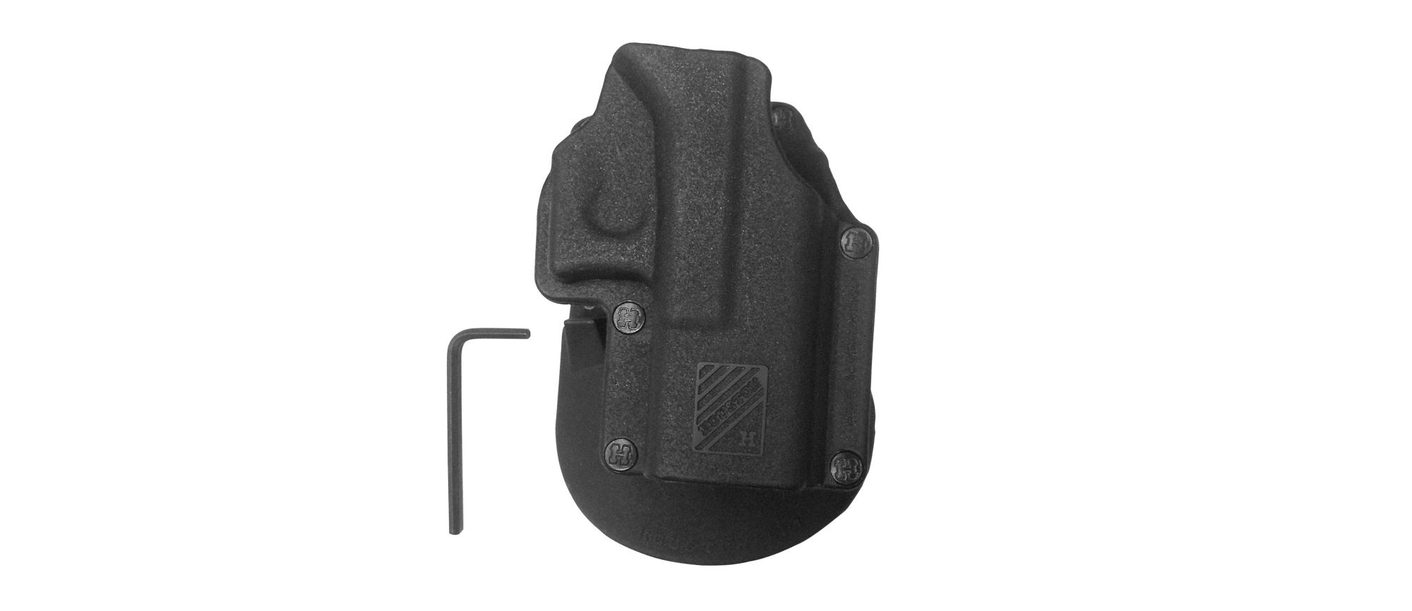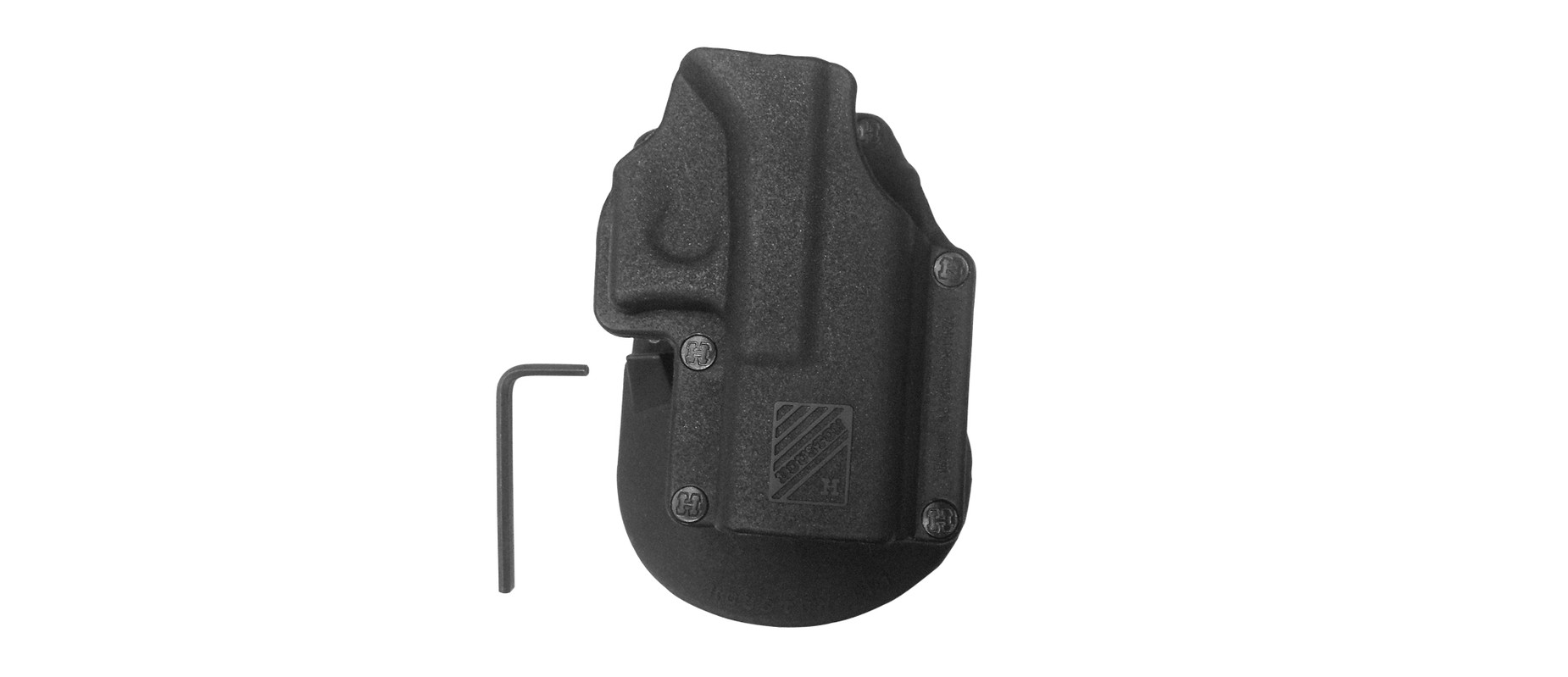Funda para pistola HOUSTON RP38R GLOCK para modelos 17/19/23/34/35 de plástico negro con paleta rotativa (Argentina)