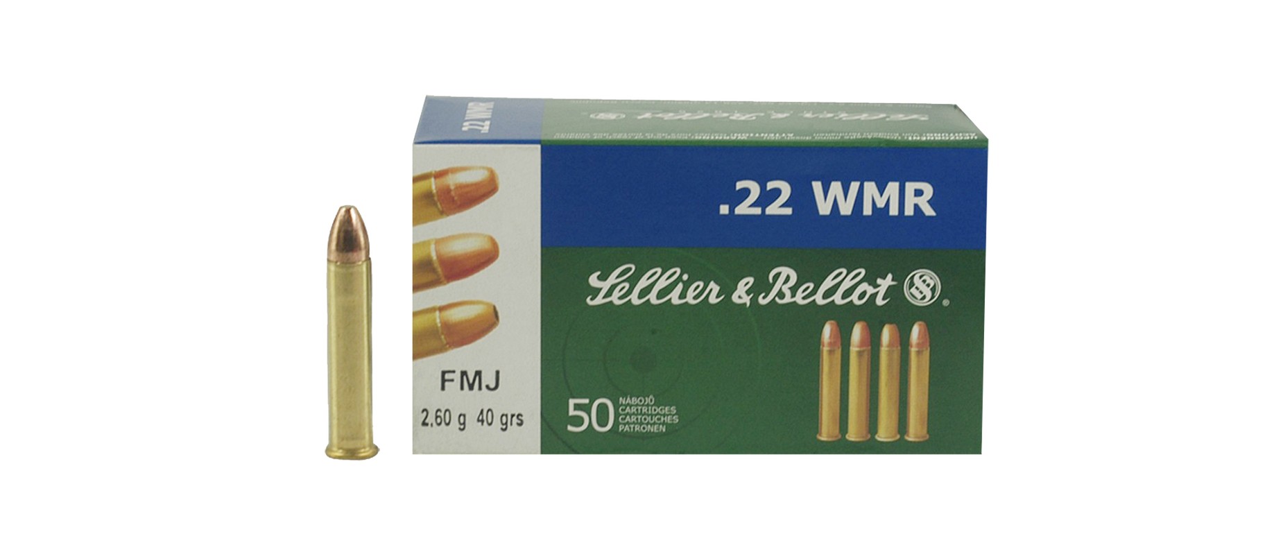 Balas calibre 22 Magnum SELLIER & BELLOT 40 gr punta enchaquetada (FMJ) caja x 50 unidades (Republica checa)