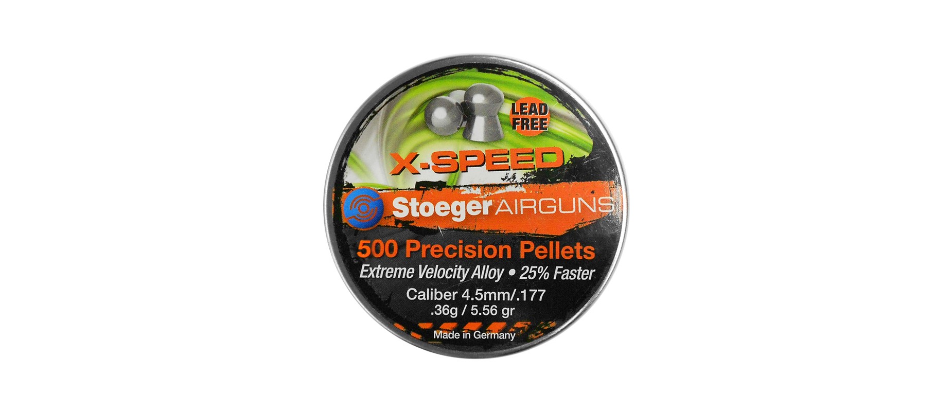 Balines calibre 4.5 STOEGER X-SPEED punta redonda lata de 500 unidades peso 0.38g/5.58 gr de aleación 25% mas rápidos (Alemania)