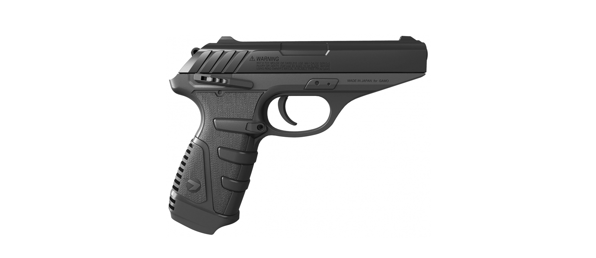 Pistola de aire CO2 GAMO P-25 BLOWBACK calibre 4.5 mm capacidad de 16 en 2 rondas de 8 tiros velocidad hasta 138 m/ s sistema semiautómatico acabado color negro y cacha sintética (Japon)