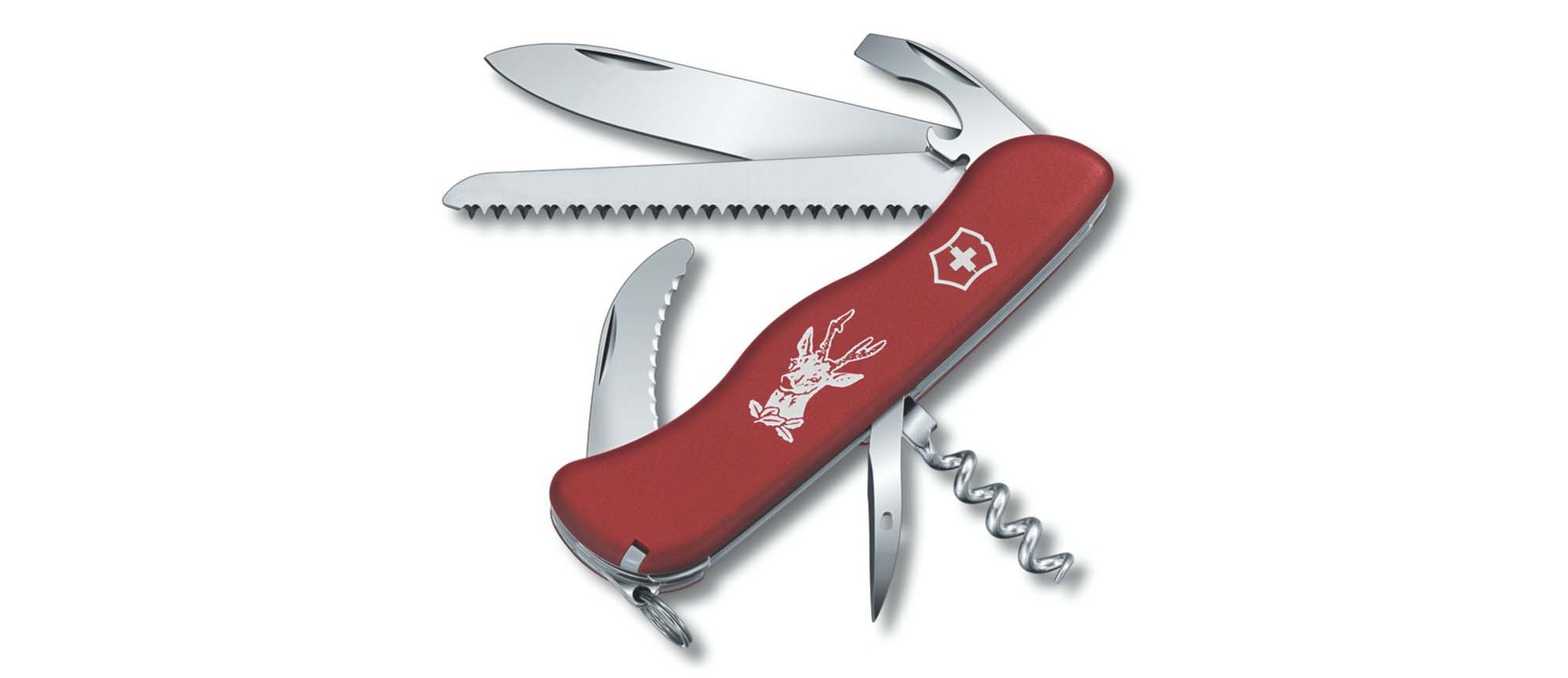 Navaja VICTORINOX HUNTER hoja bloqueable mango rojo con logo de venado 13 funciones dimensiones 111x31.5x18.5mm 0.8873 (Suiza)