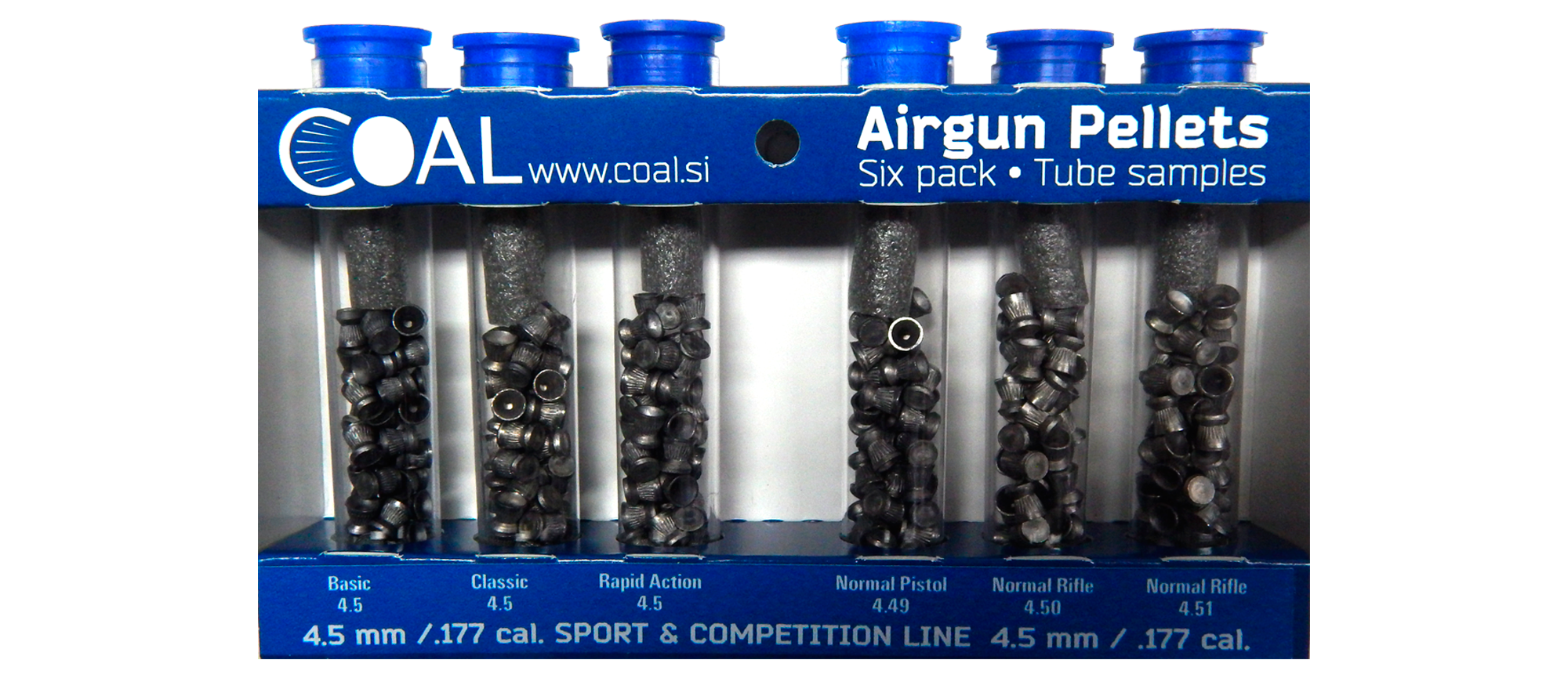 Pack de Muestras calibre 4.5 COAL SPORT & COMPETITION contiene 6 tubos de 40 und. balines Basic, Classic, Rapid Action y Normal (Pistol 4.49 Rifle 4.5 y Rifle 4.51) 6TS-SC45