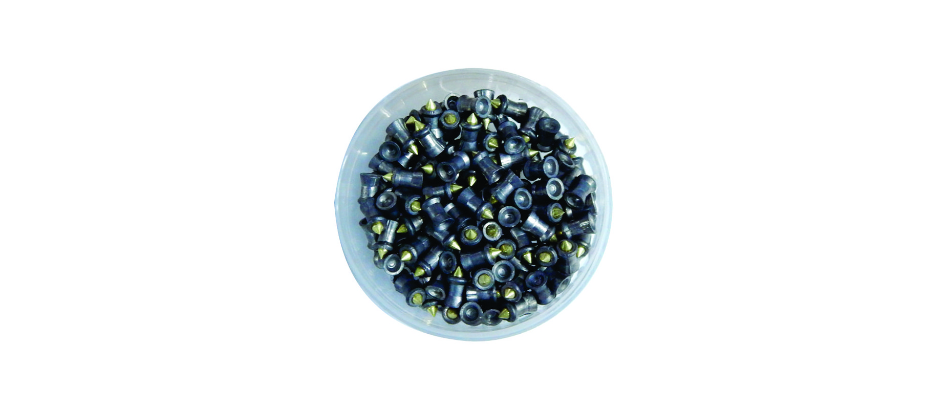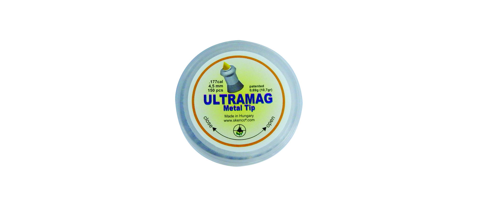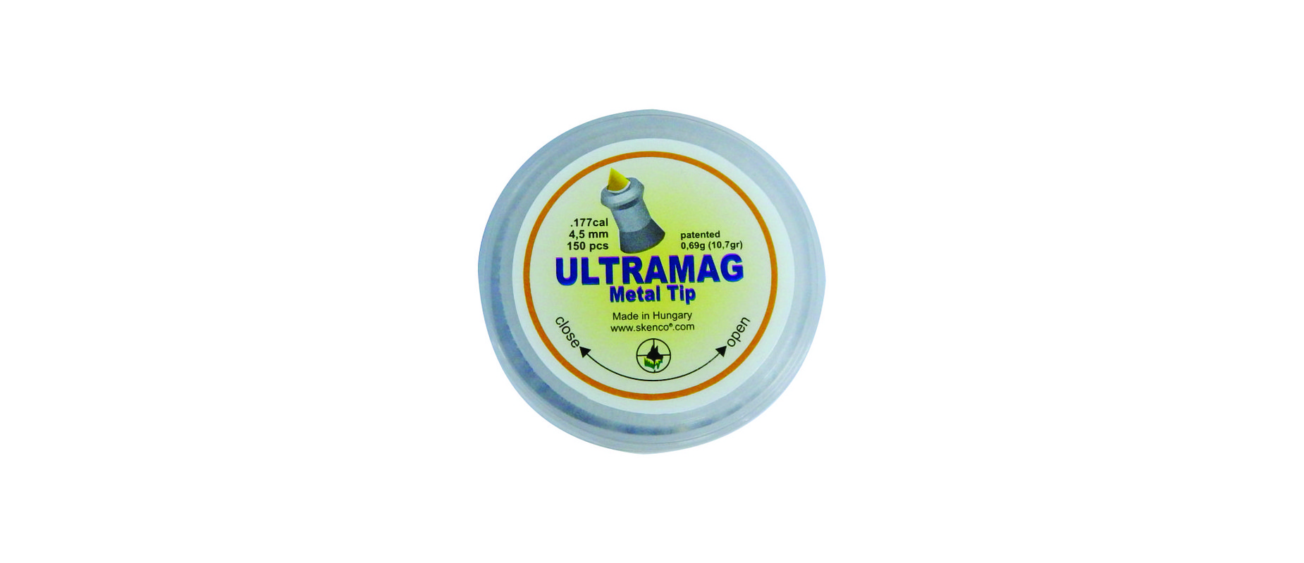 Balines calibre 4.50 SKENCO ULTRAMAG METAL TIP punta cónica de bronce cuerpo de plomo lata de 150 unidades peso 0.69g/10.70gr MT15045069