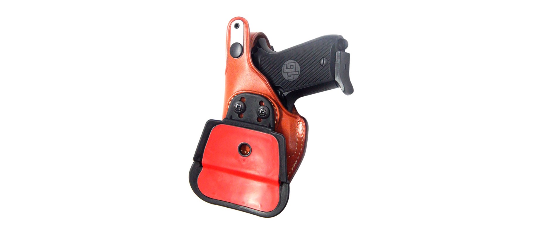 Funda para Pistola MASC LXGF-100 TUGRA ( 1012 ) para FORT17 de cuero color marrón tipo externa seguro ojal con broche sujecion tipo paleta de polimero negro angulo ajustable (M5)