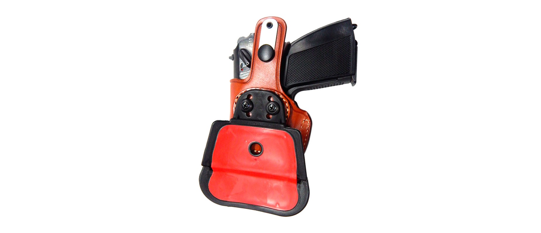 Funda para Pistola MASC LXGF-100 TUGRA ( 1190 ) para BAIKAL/MAK de cuero color marrón tipo externa seguro ojal con broche sujecion tipo paleta de polimero negro angulo ajustable (M5)