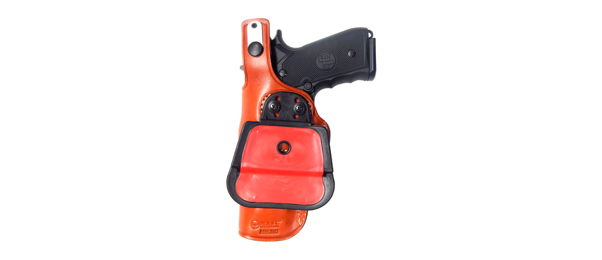 Funda para Pistola MASC LXGF-100 TUGRA ( 1070 ) para BERETTA 92/96/ de cuero color marrón tipo externa seguro ojal con broche sujecion tipo paleta de polimero negro angulo ajustable (M5)