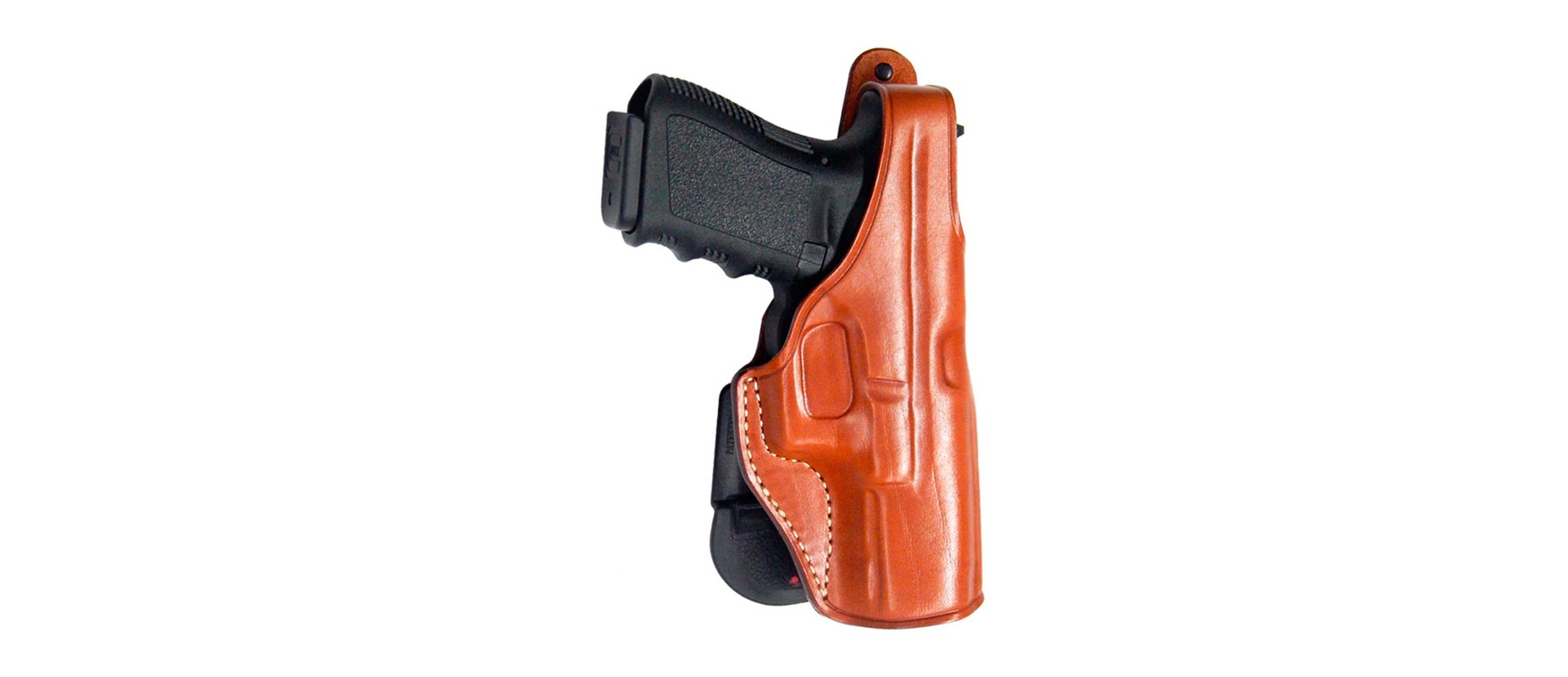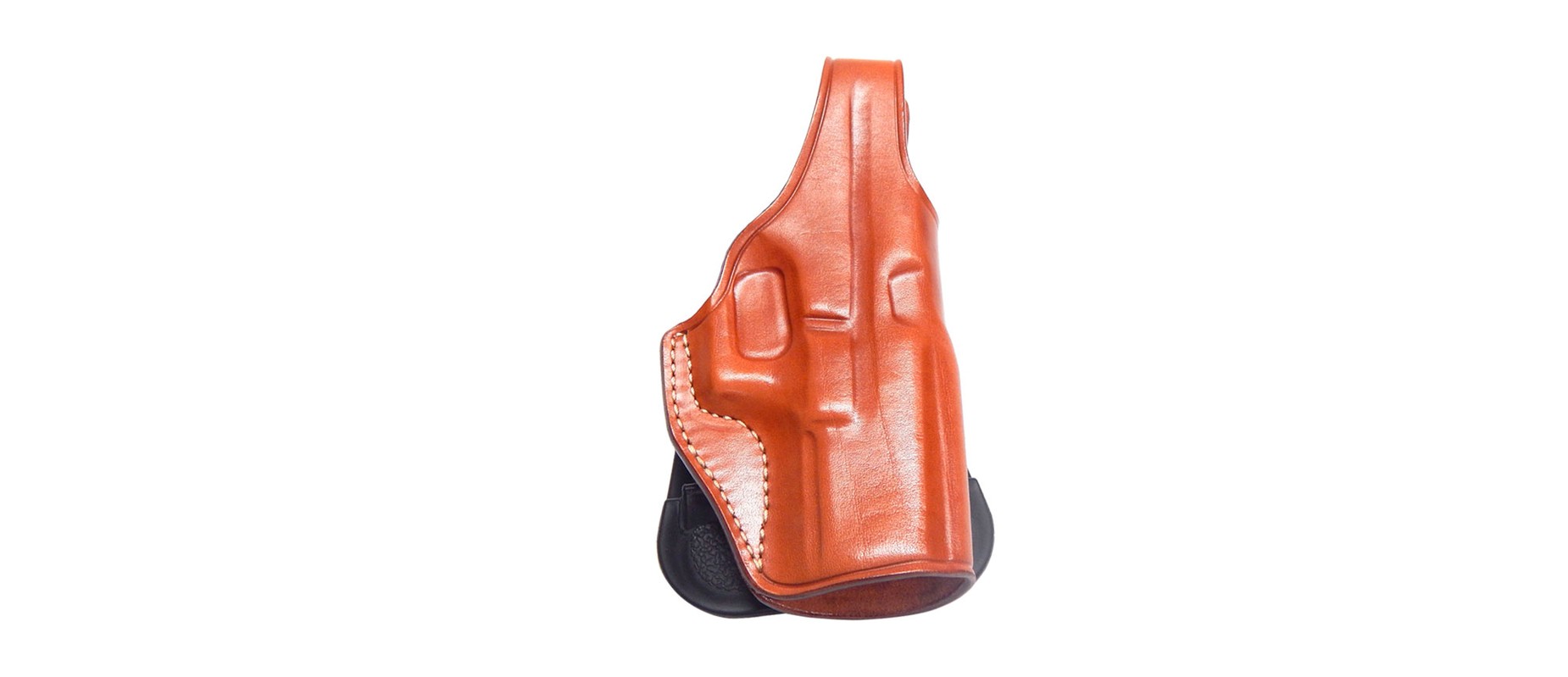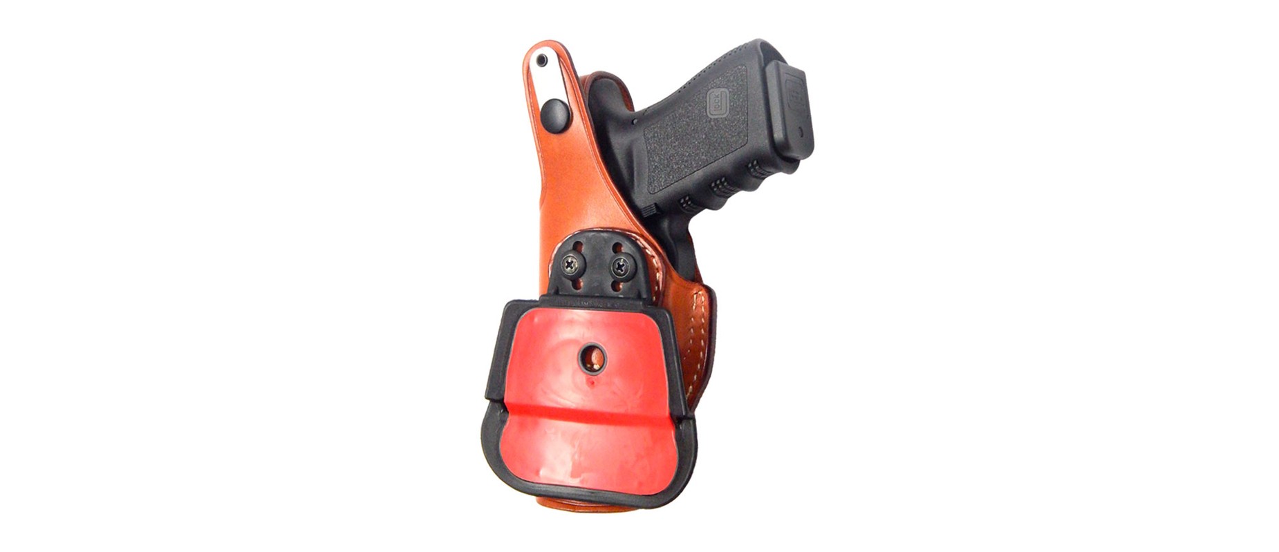 Funda para Pistola MASC LXGF-100 TUGRA ( 1013 ) para GLOCK 17/22 de cuero color marrón tipo externa seguro ojal con broche sujecion tipo paleta de polimero negro angulo ajustable (M5)