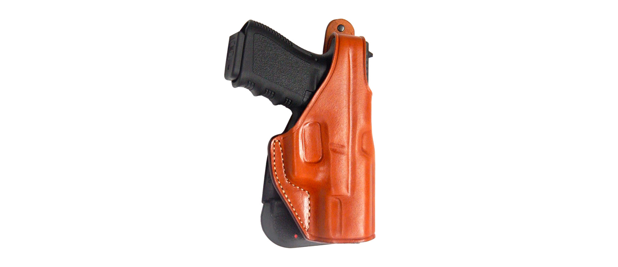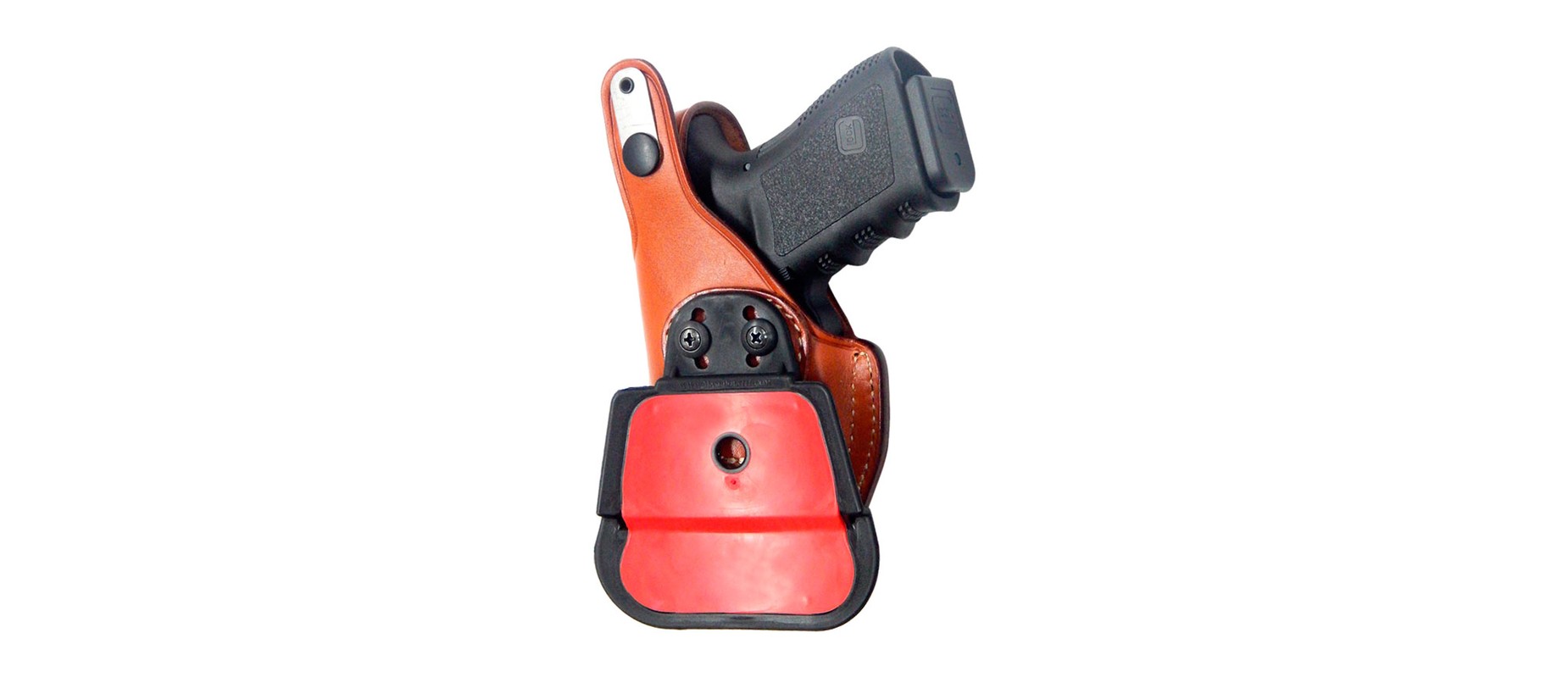 Funda para Pistola MASC LXGF-100 TUGRA ( 1014 ) para GLOCK 19/25 de cuero color marrón tipo externa seguro ojal con broche sujecion tipo paleta de polimero negro angulo ajustable (M5)
