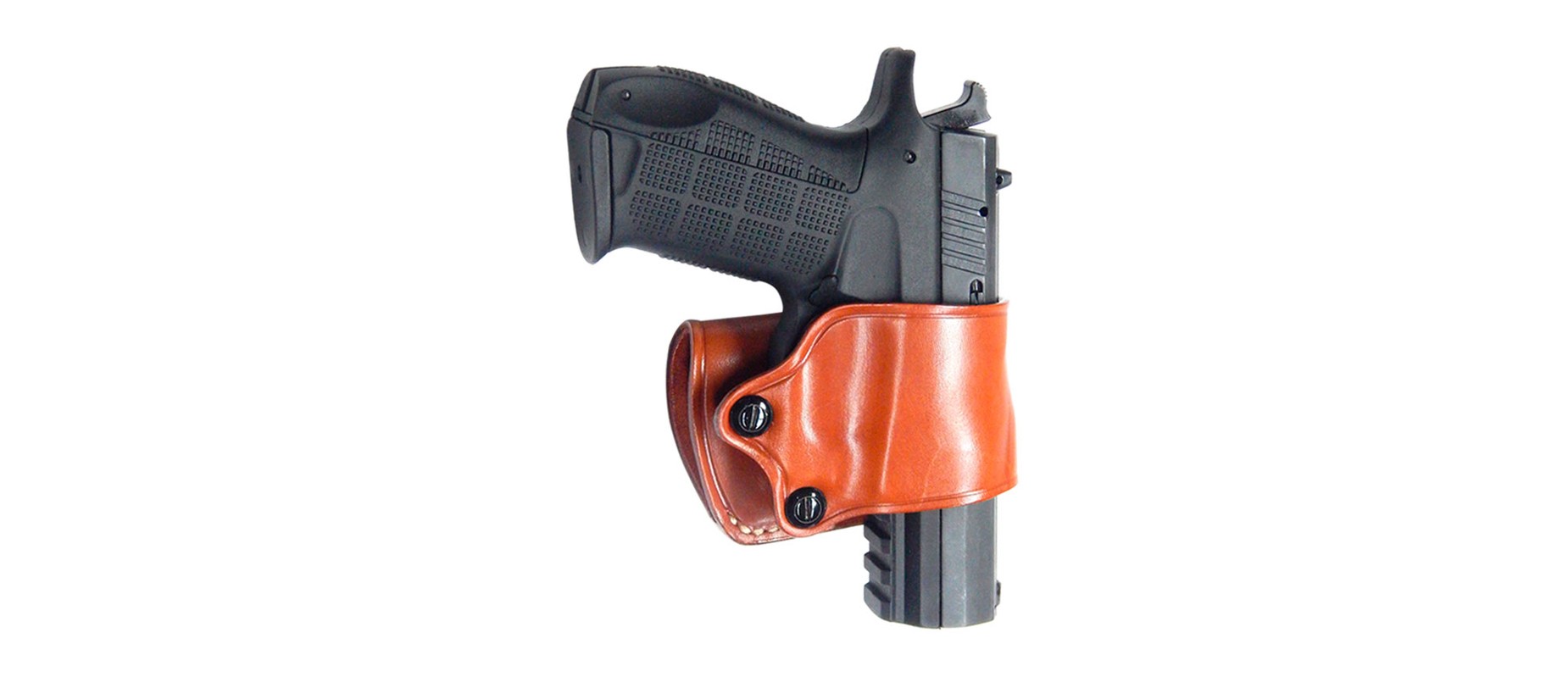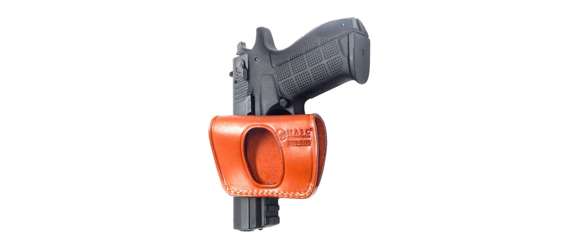 Funda para Pistola MASC LXGF-5000 ZEVRA ( 1085 ) para FORT 17/WAL P99 de cuero color marrón tipo externa compacta seguro a presión regulable sujeción a correa por ojal de cuero (M4)