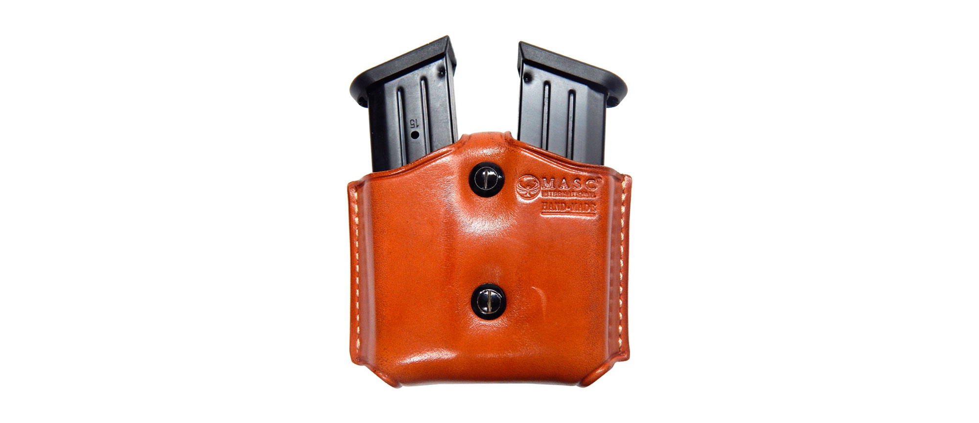 Porta Cacerina MASC 3010 ( 1012 ) para CZ 75 P-07 DUTY doble de cuero color marron tipo externa seguro a presion sujecion a correa con ojales 2 posiciones (M22)