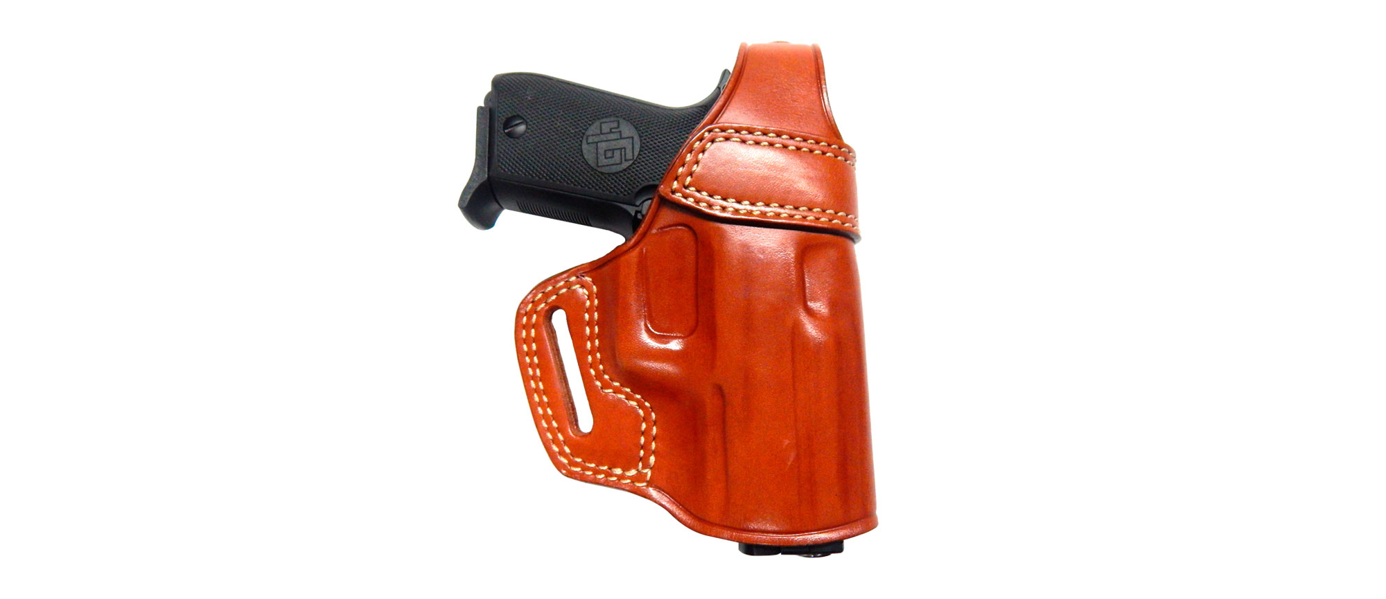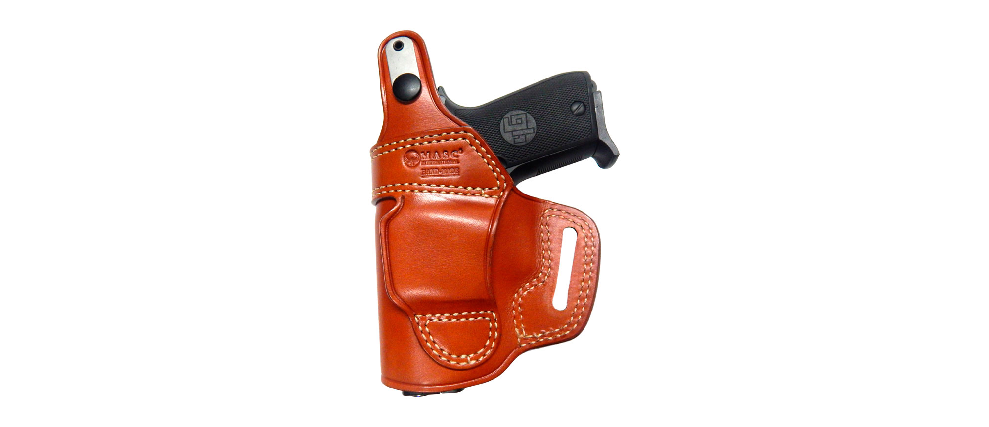 Funda para Pistola MASC GF-100 AFAK ( 1012 ) para CZ 75 P-07 DUTY de cuero color marrón tipo externa seguro ojal con broche sujecion a correa con ojal interno y otro tipo oreja (M8)