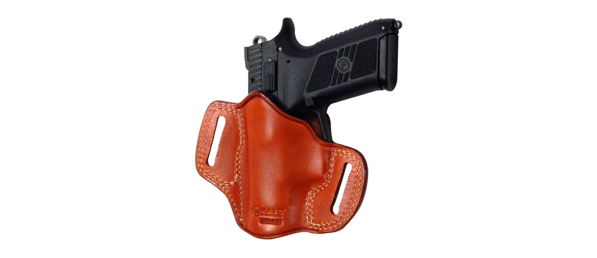 Funda para Pistola MASC LXGF-140 HISAR ( 1012 ) para CZ 75 P-07 DUTY de cuero color marrón tipo externa seguro a presion sujecion a correa con 2 ojales tipo orejas (M1)