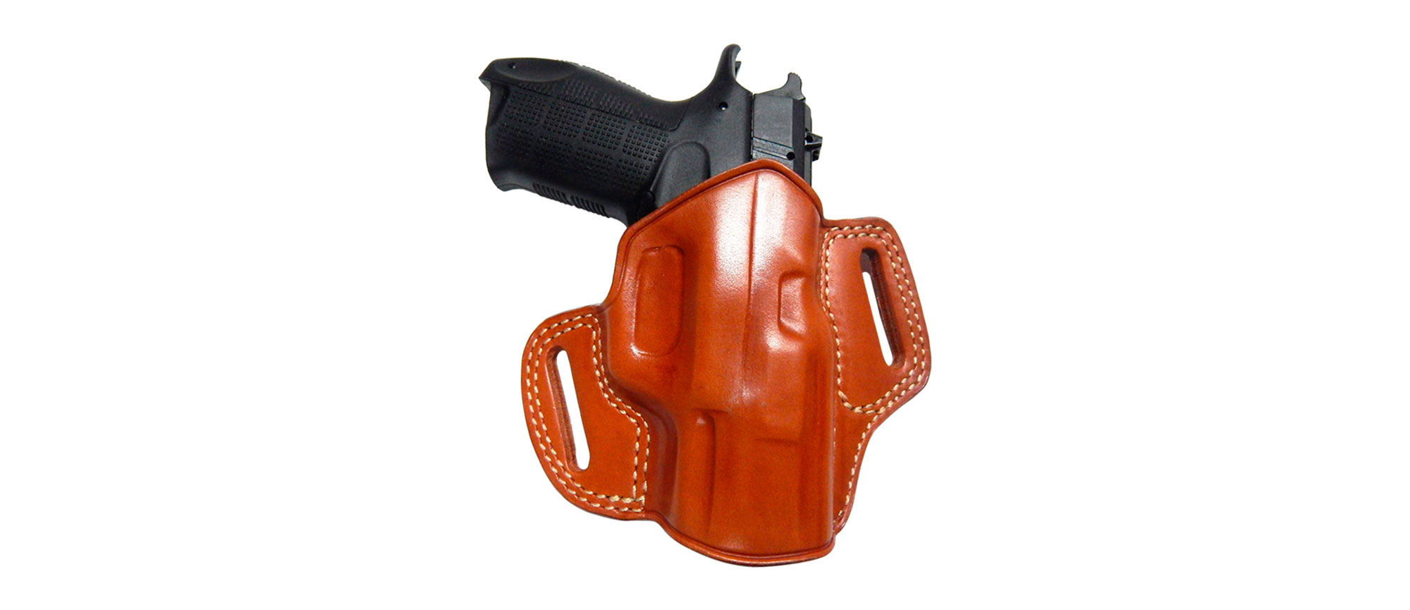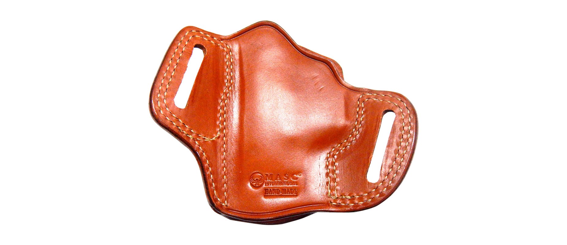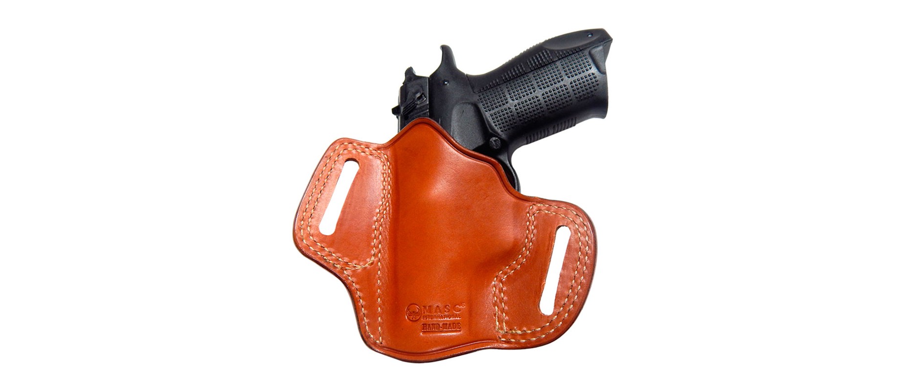 Funda para Pistola MASC LXGF-140 HISAR ( 1085 ) para FORT 17/WAL P99 de cuero color marrón tipo externa seguro a presion sujecion a correa con 2 ojales tipo orejas (M1)