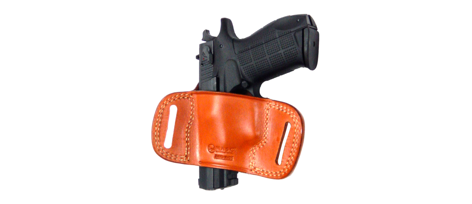Funda para Pistola MASC GF-3010 PARS ( 1085 ) para FORT 17/WAL P99 de cuero color marrón tipo externa compacta seguro a presion sujecion a correa con 2 ojales tipo orejas (M3)