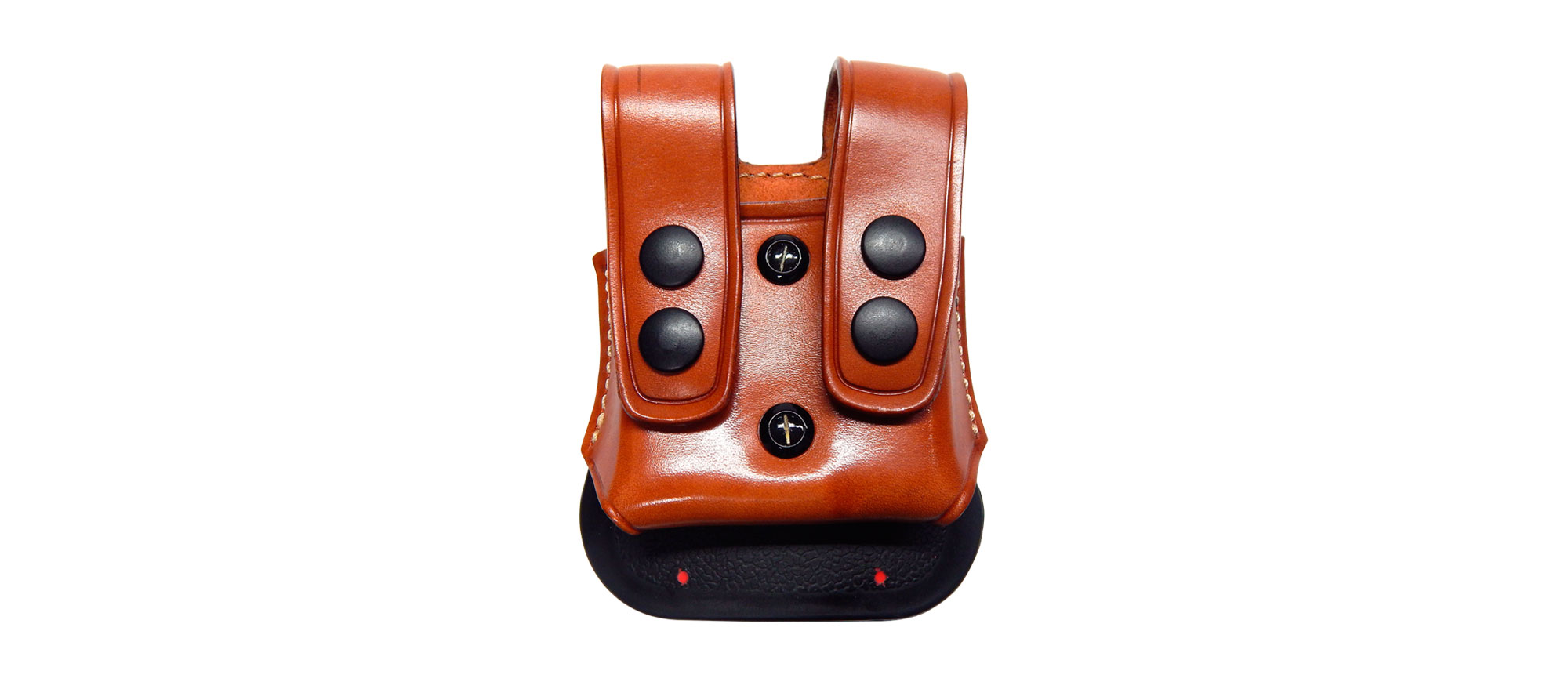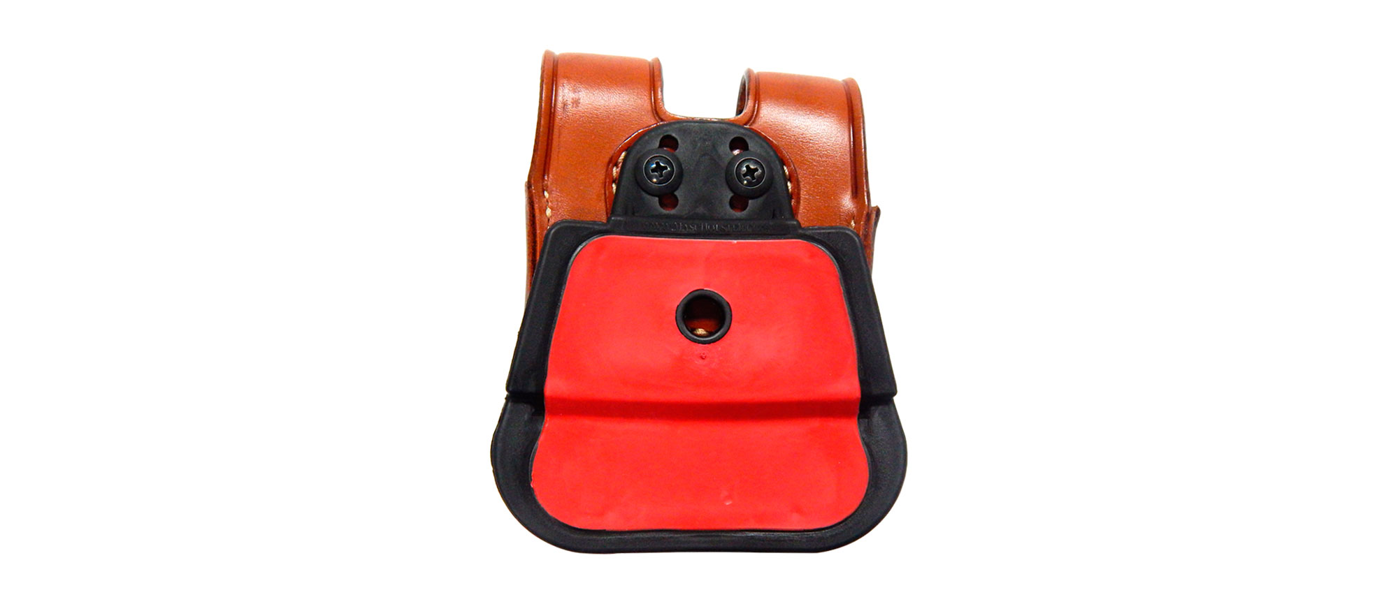 Porta Cacerina MASC JK-134 ( 1006 ) para BERSA 380 doble de cuero color marron tipo externa seguro con hojal y doble broche sujecion tipo paleta de polimero negro angulo ajustable (M23)