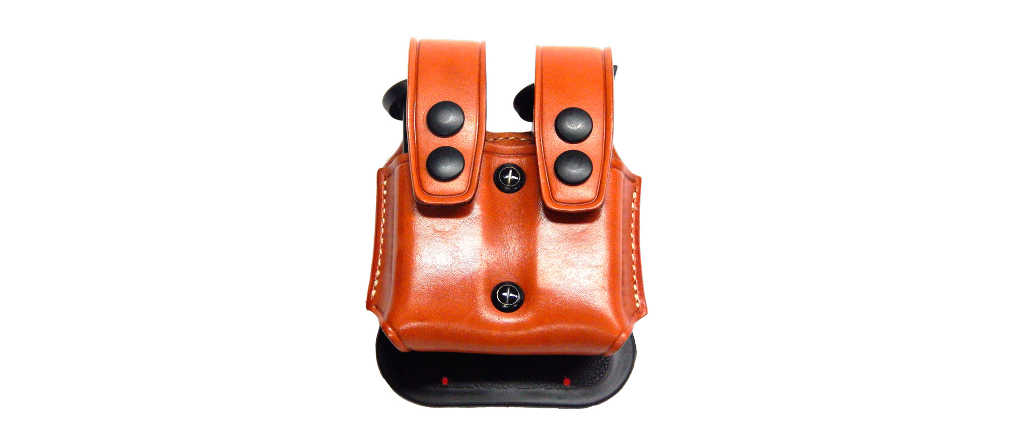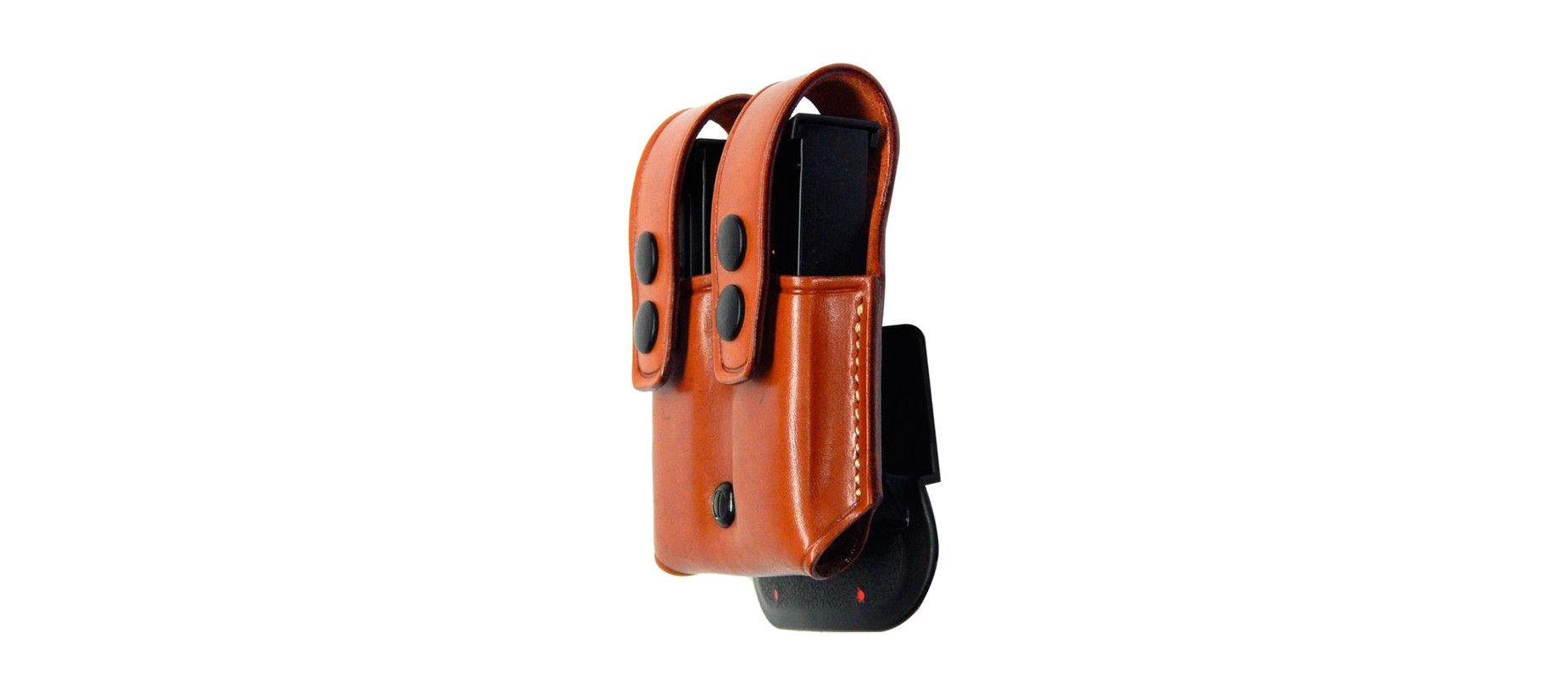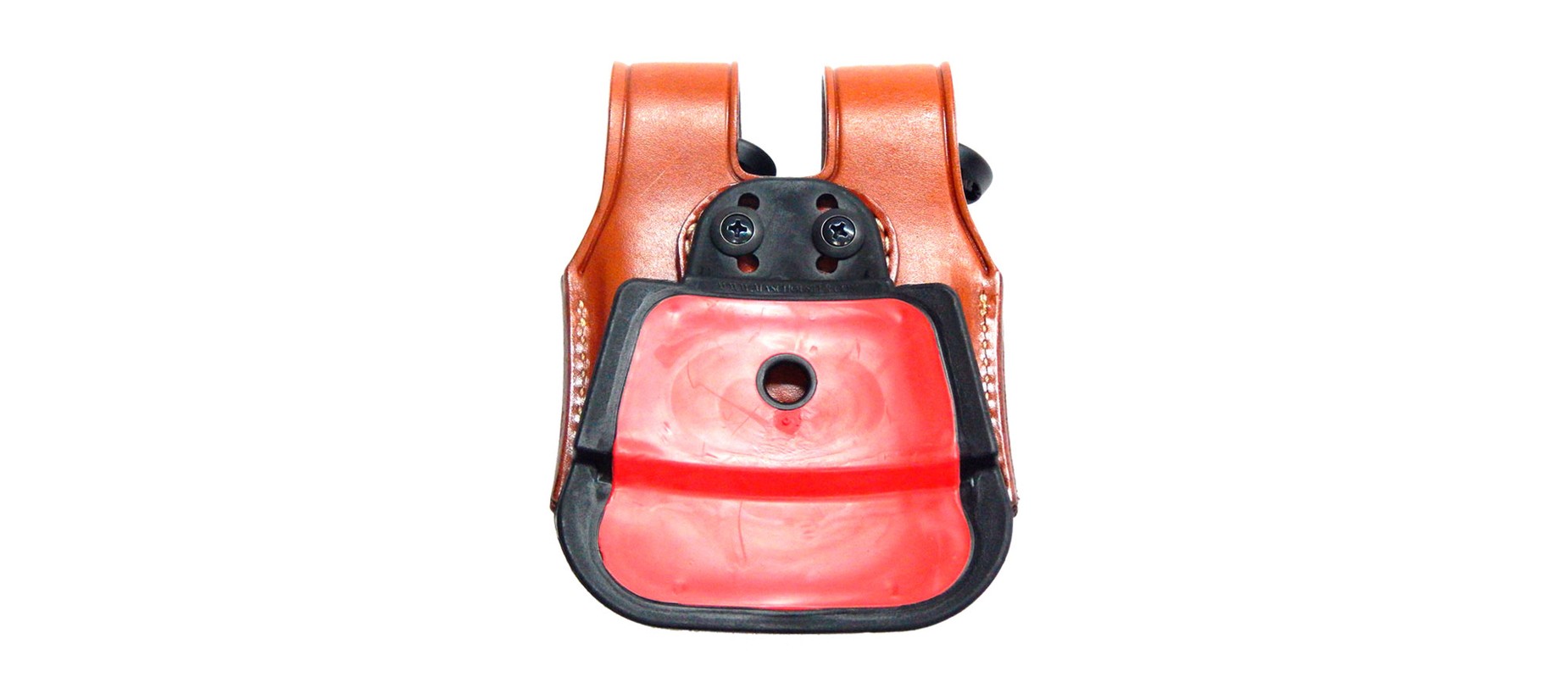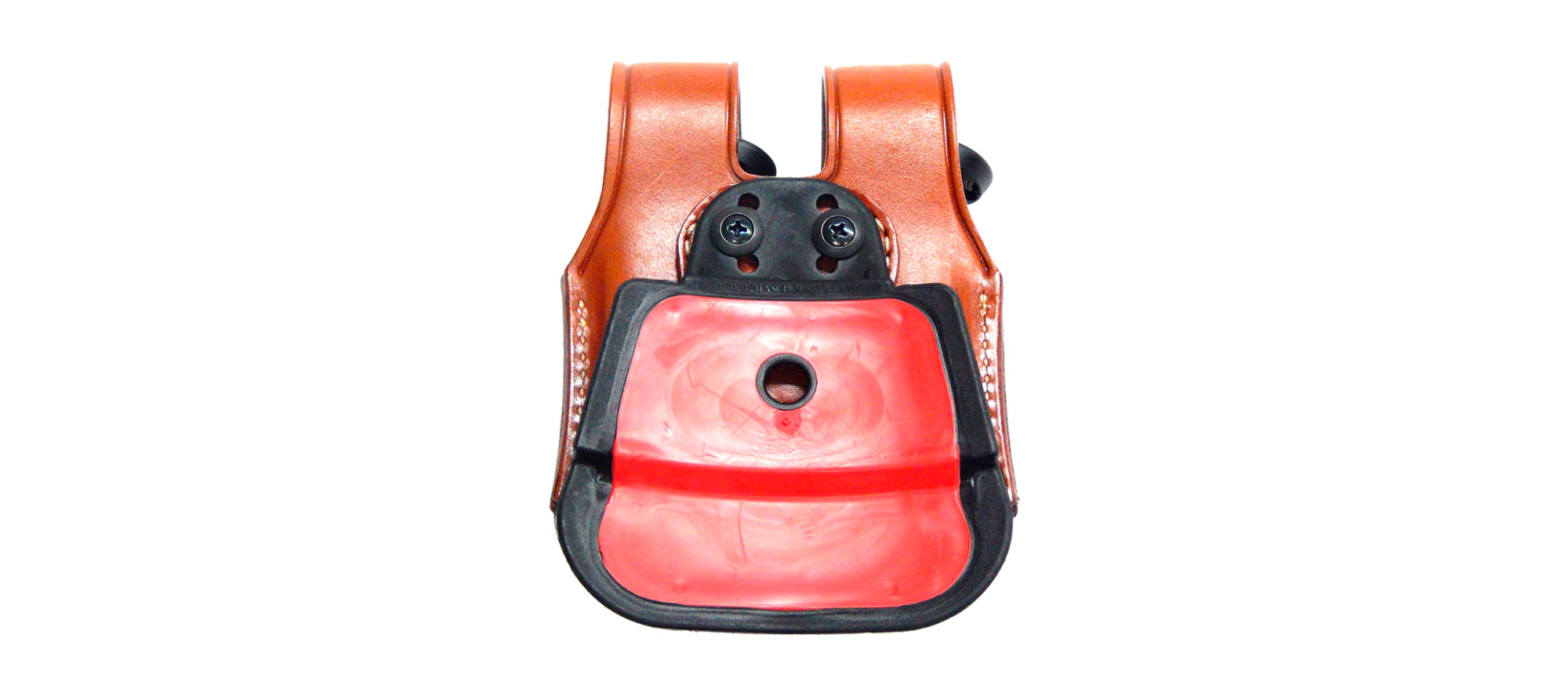 Porta Cacerina MASC JK-134 ( 1012 ) para CZ 75 P-07 DUTY doble de cuero color marron tipo externa seguro con hojal y doble broche sujecion tipo paleta de polimero negro angulo ajustable (M2