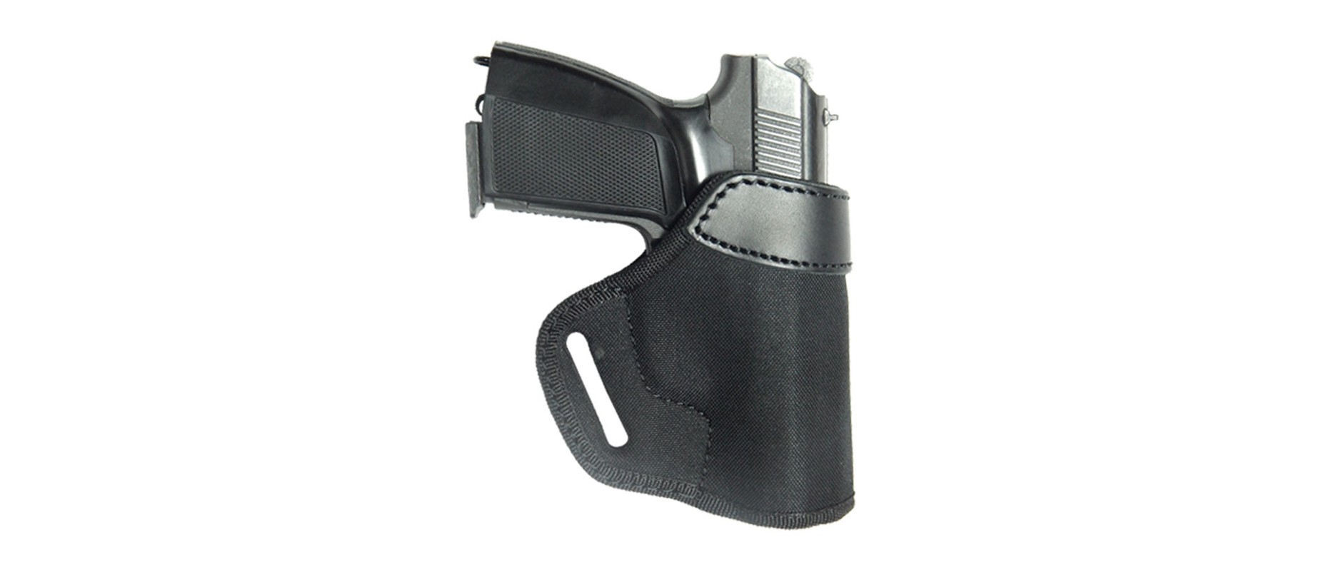 Funda para Pistola MASC GFT-115 RUMELI ( 1190 ) para BAIKAL/MAK de lona color negro tipo externa seguro a presion sujecion con ojal interno de cuero y otro tipo oreja (M19)
