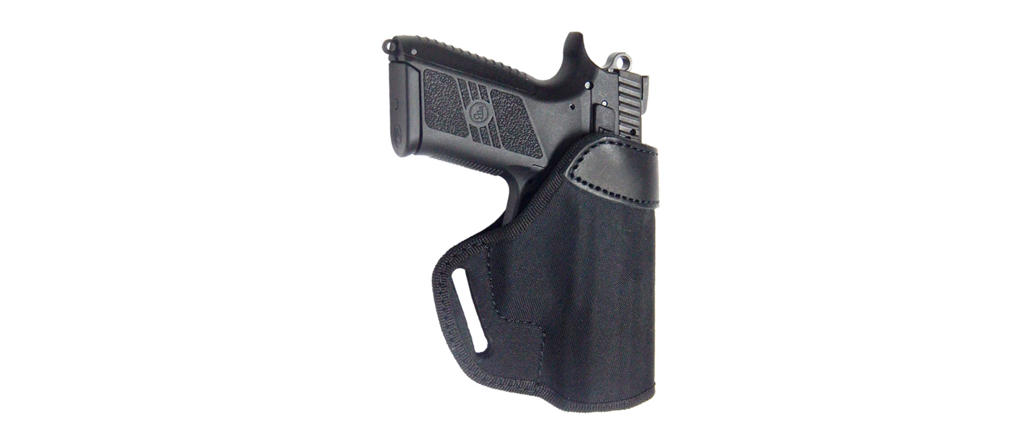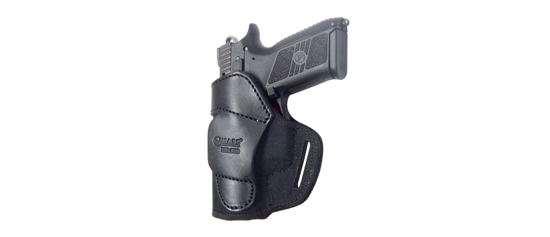 Funda para Pistola MASC GFT-115 RUMELI ( 1012 ) para CZ 75 P-07 DUTY de lona color negro tipo externa seguro a presion sujecion con ojal interno de cuero y otro tipo oreja (M19)