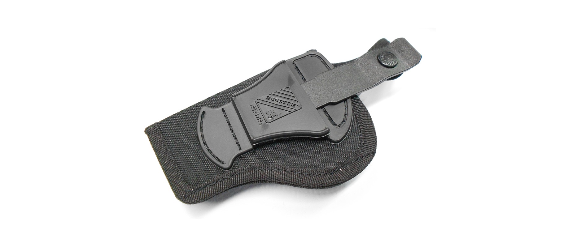 Funda para pistola HOUSTON 38TF GLOCK 17/19/22/23/ 34/35 de lona termo moldeada color negro seguro con broche ajustable sujeción a la correa (Argentina)