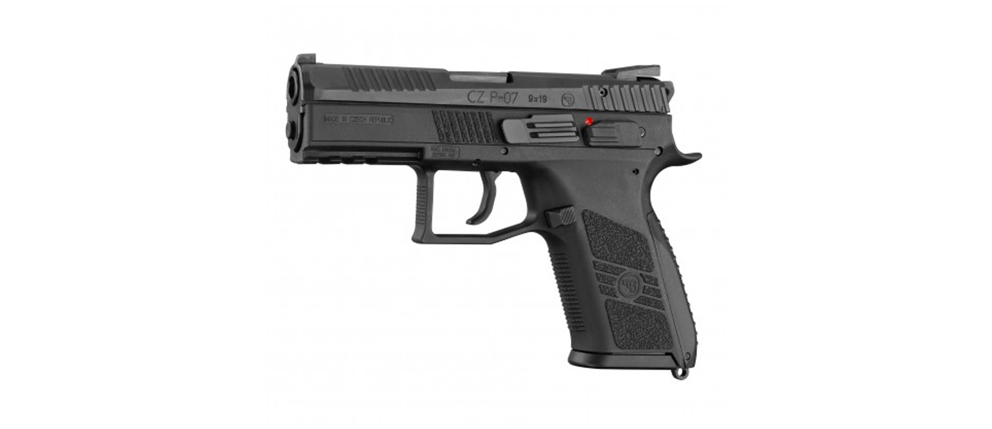Pistola CZ P-07 calibre 9mm (9x19mm) 15 tiros pavonada 2 cacerinas con 2 tapas +2 opcionales y 2 extensiones de empuñadora incluye estuche de plástico negro y baqueta de limpieza de nylon (República Checa)