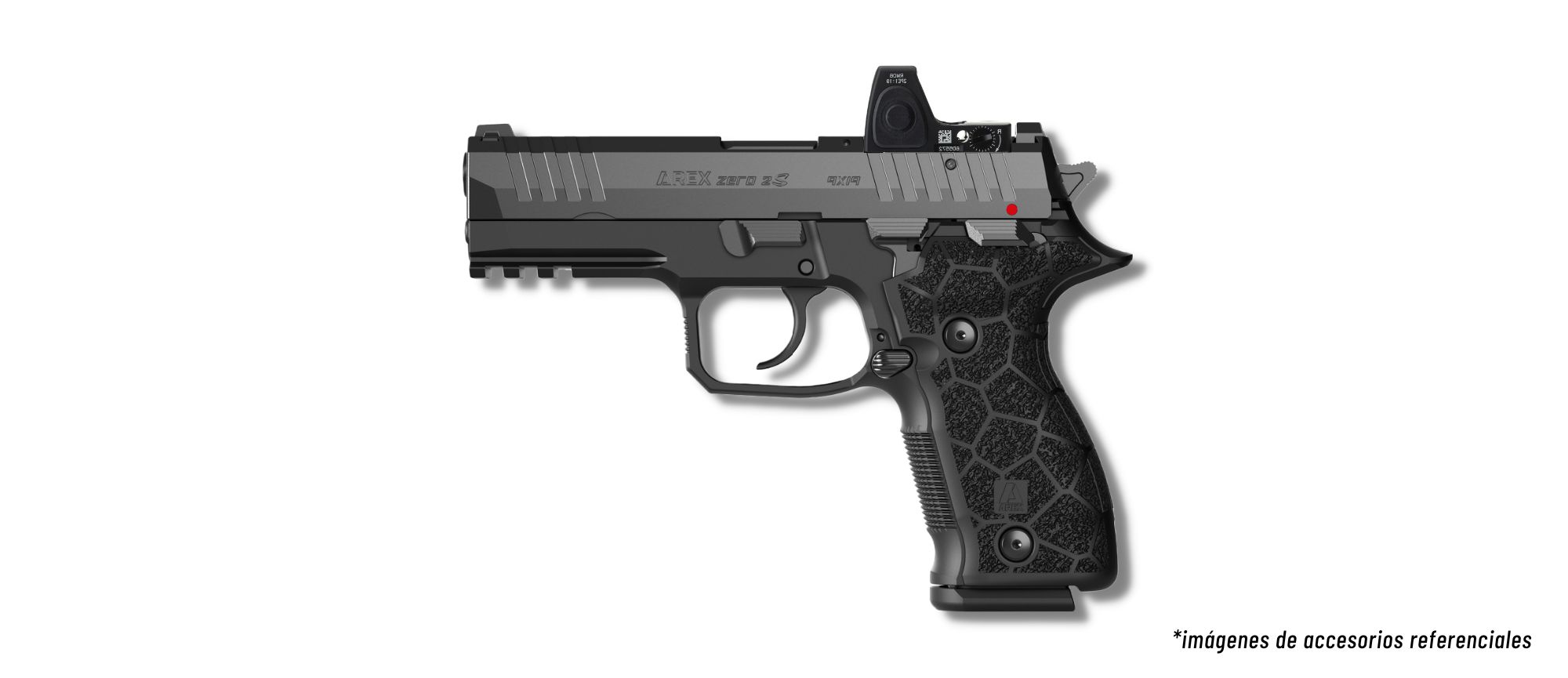 Pistola AREX ZERO 2 S OR-S calibre 9mm (9x19mm) semiautomática cañón 4.25" sistema SA/DA 02 cacerinas capacidad 17 tiros corredera pavonada con placa Optic Ready armazón de polímero negro peso 890 gr (Eslovenia)