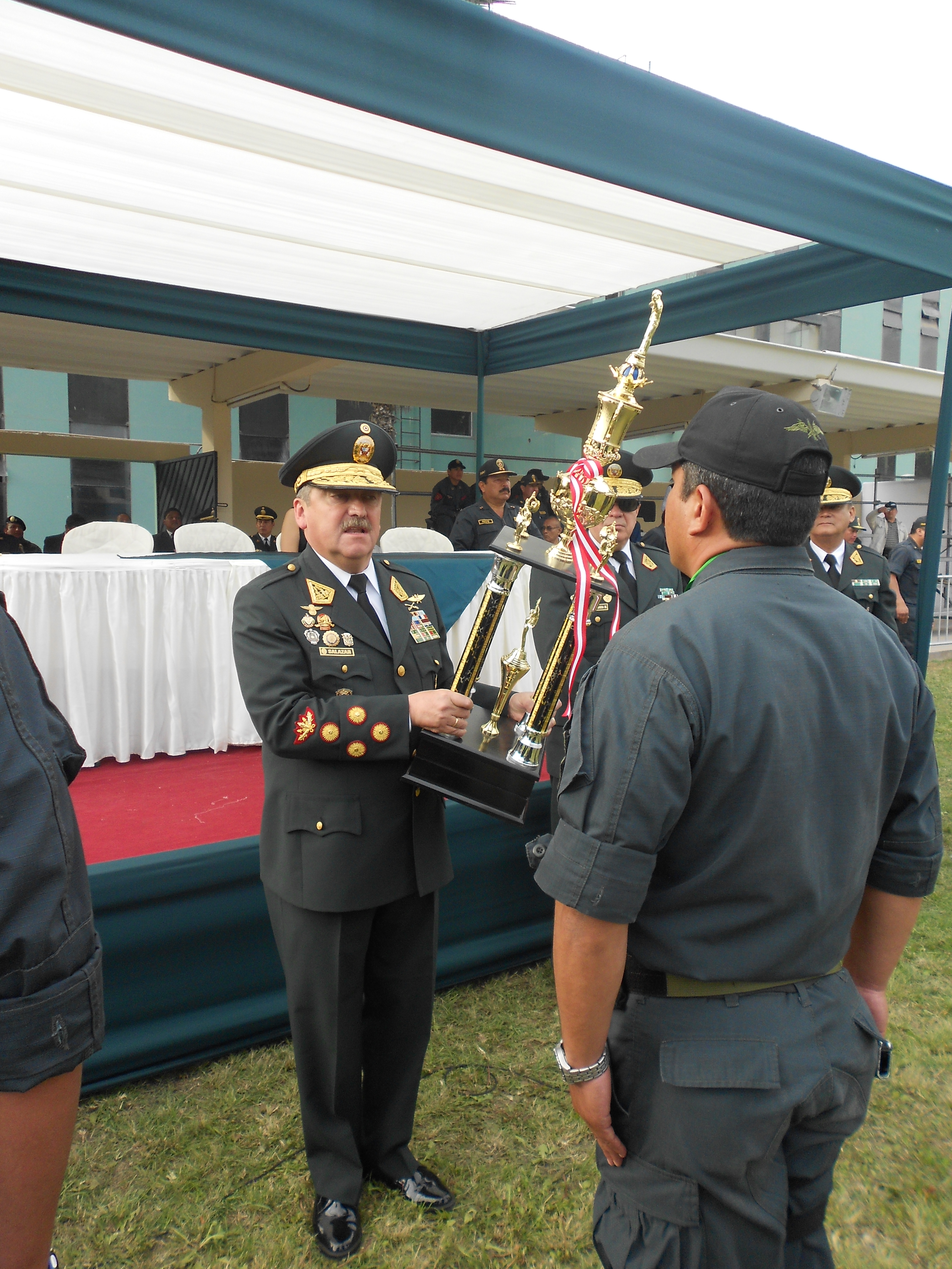 Para la entrega de premios y clausura se hiso presente el Director General de la Policía Nacional del Perú el General de Policía Raúl Salazar Salazar acompañado de su distinguida esposa Enma Patricia Barrantes de Salazar.