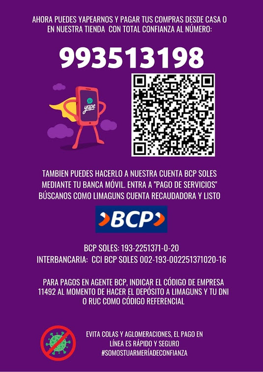 Si realiza el pago usando la app del BCP buscar en pago de servicios buscar el nombre Lima Guns