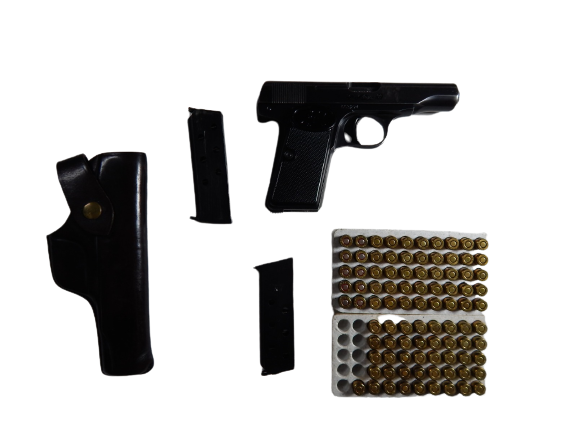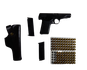 Incluye: 2 cacerinas de 6 tiros, 100 balas FMJ y 1 funda de cuero original.