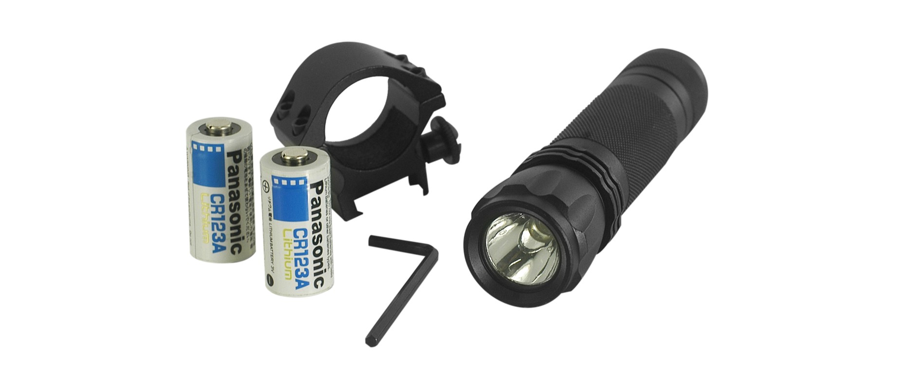 Linterna NcSTAR ATFLB led potente 65 lúmenes de aluminio color negro incluye 02 pilas y anillo para riel picatinny
