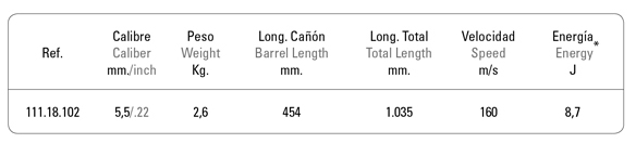 • Culata de madera de haya vaporizada. • Picadura en empuñadura. • Seguro automático. • Alza y punto de mira de fibra óptica.