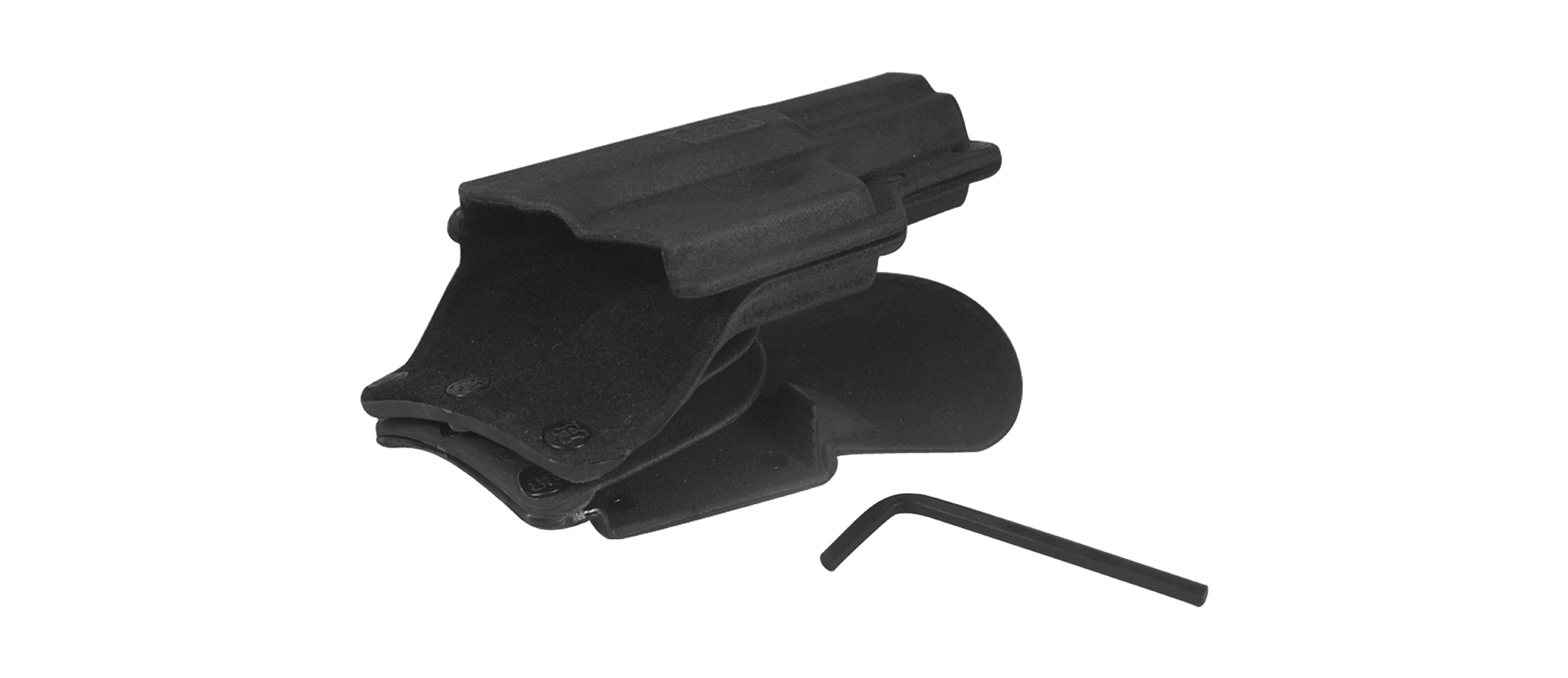 Funda para pistola HOUSTON RPWR WALTHER/BERSA para modelo P99/9/40 de plástico negro con paleta rotativa (Argentina)