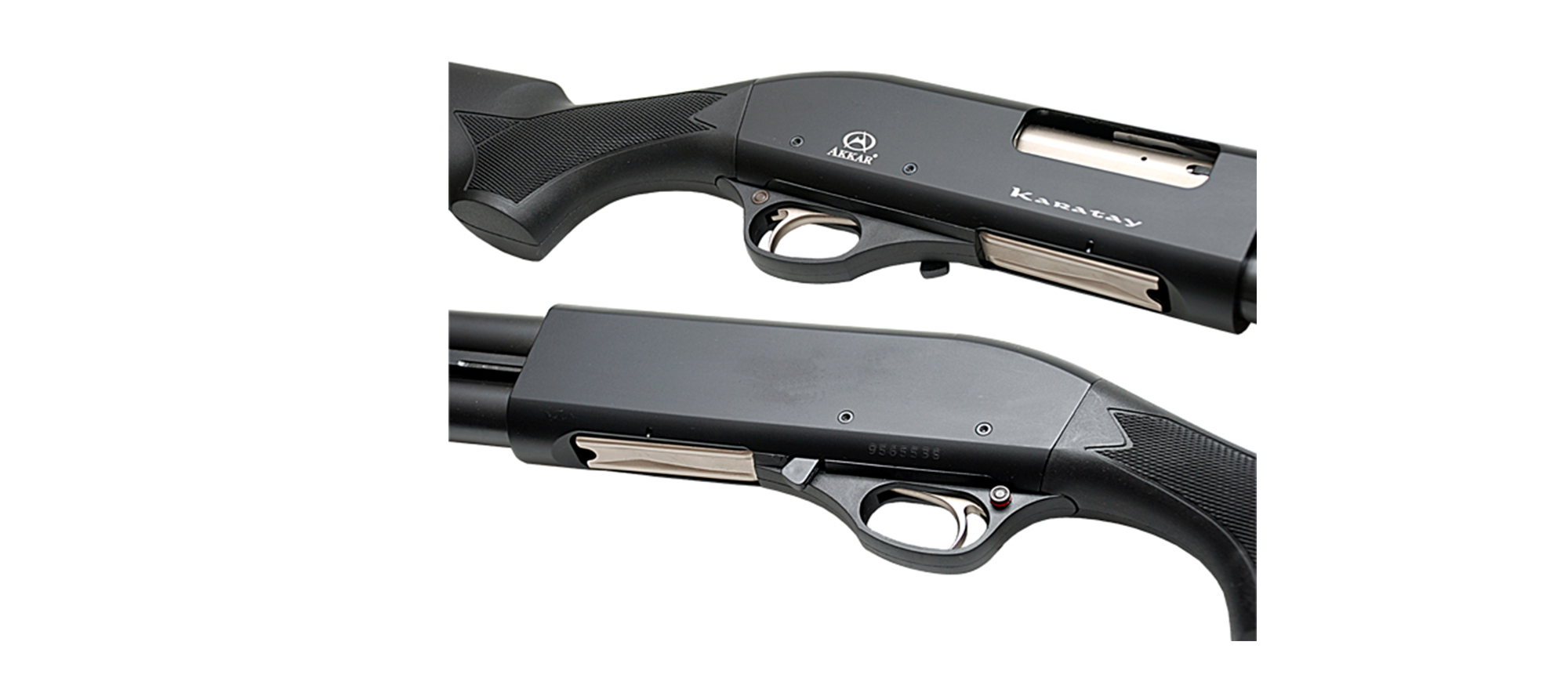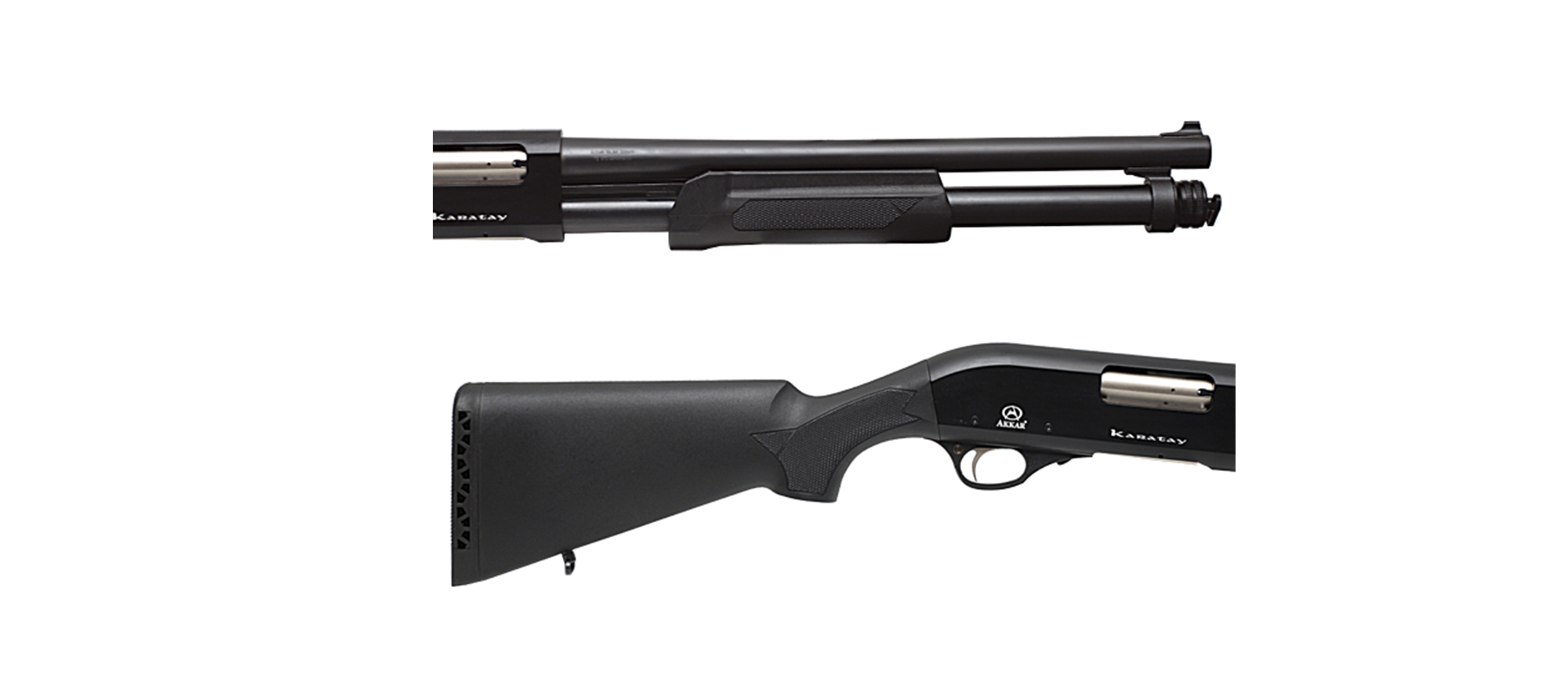 Escopeta AKKAR KARATAY calibre 12 8+1 tiros sistema de bomba cañón de 22 pulgadas pavonada culata sintetica fija