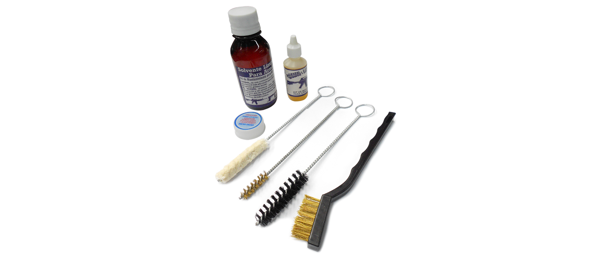 Kit de limpieza nacional para pistola/revólver calibre 380, 9mm/38 incluye baqueta, aceite, solvente, escobilla, cepillo, crema sólida y franela para limpieza