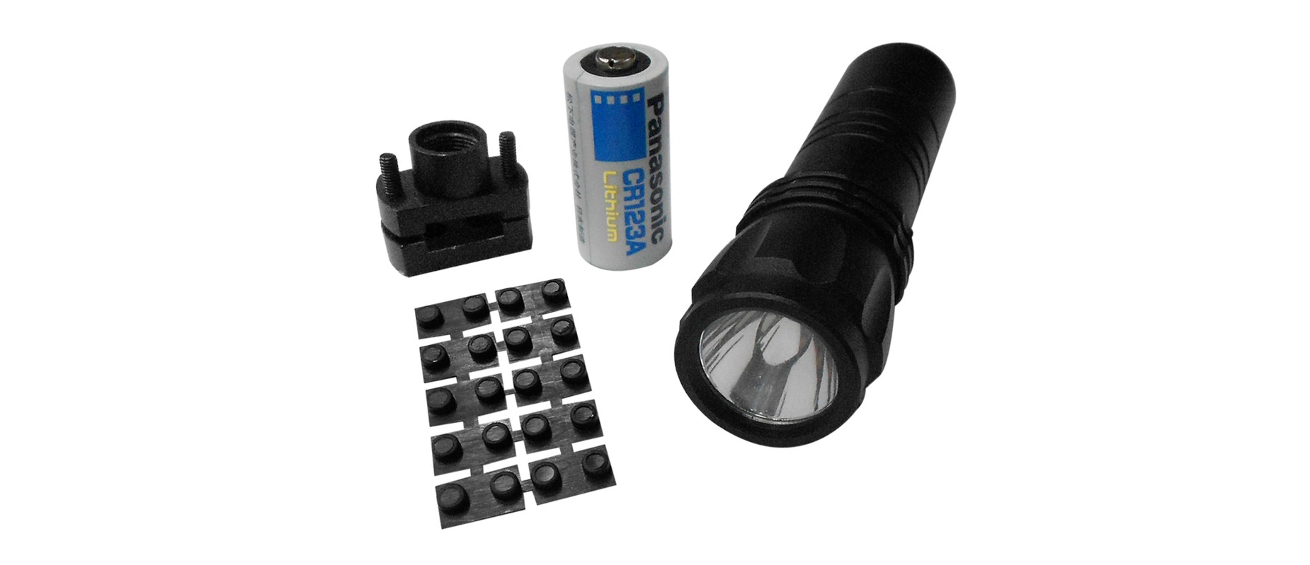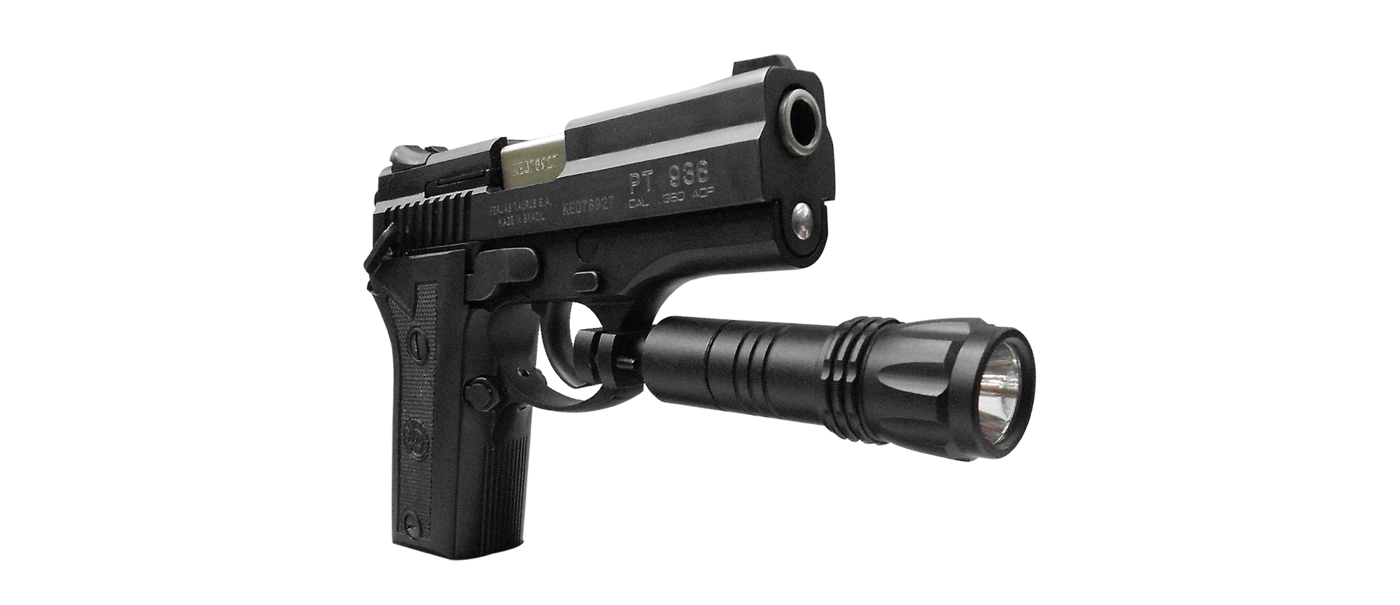 Linterna táctica NcSTAR APFS de aluminio color negro luz led 35 lúmenes de potencia con sujeción a guardamonte acoplable con cualquier pistola