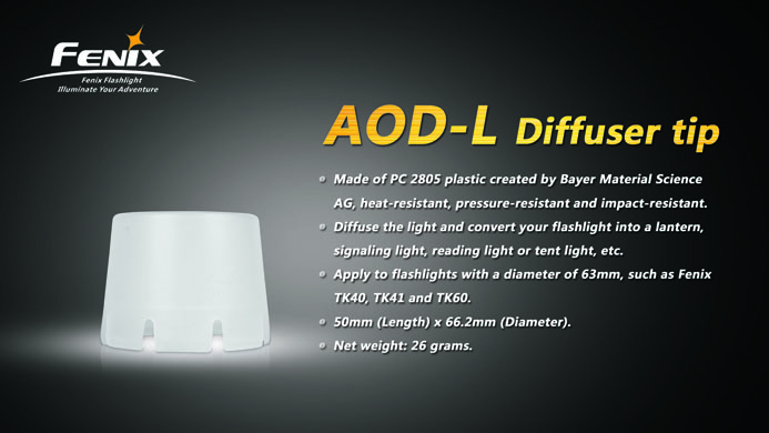 Difusor FENIX AOD-L compatible con los modelos TK40, TK41, TK60 convierte las linternas en lamparas de camping