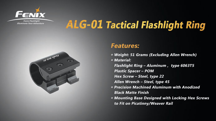 Anillo para linterna FENIX ALG-01 con anclaje para riel picatinny compatible con los modelos TK11, TK12, TK15, TK21, TA20,TA21 y PD32