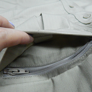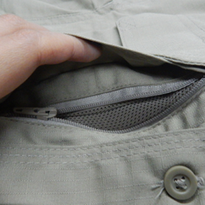 • Bolsillo con cremallera adicional queda escondido debajo de la pretina cuando se mete la camisa.