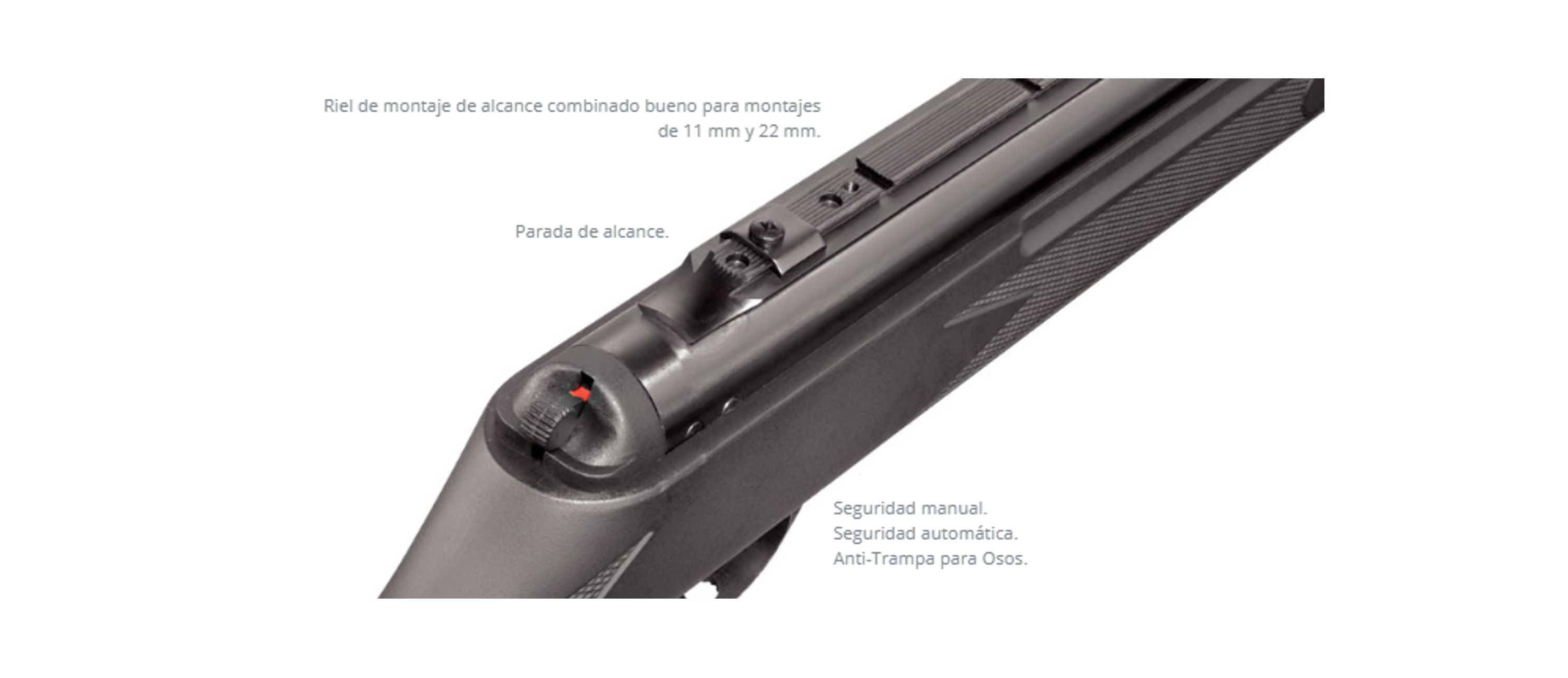 Disponible en calibre .177 (4.5 mm), .22 (5.5 mm) y .25 (6.35 mm).