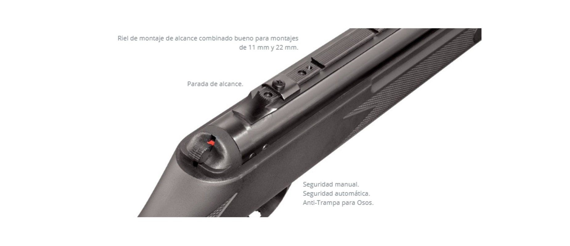Rotura de boca grande para amartillar fácilmente el rifle.