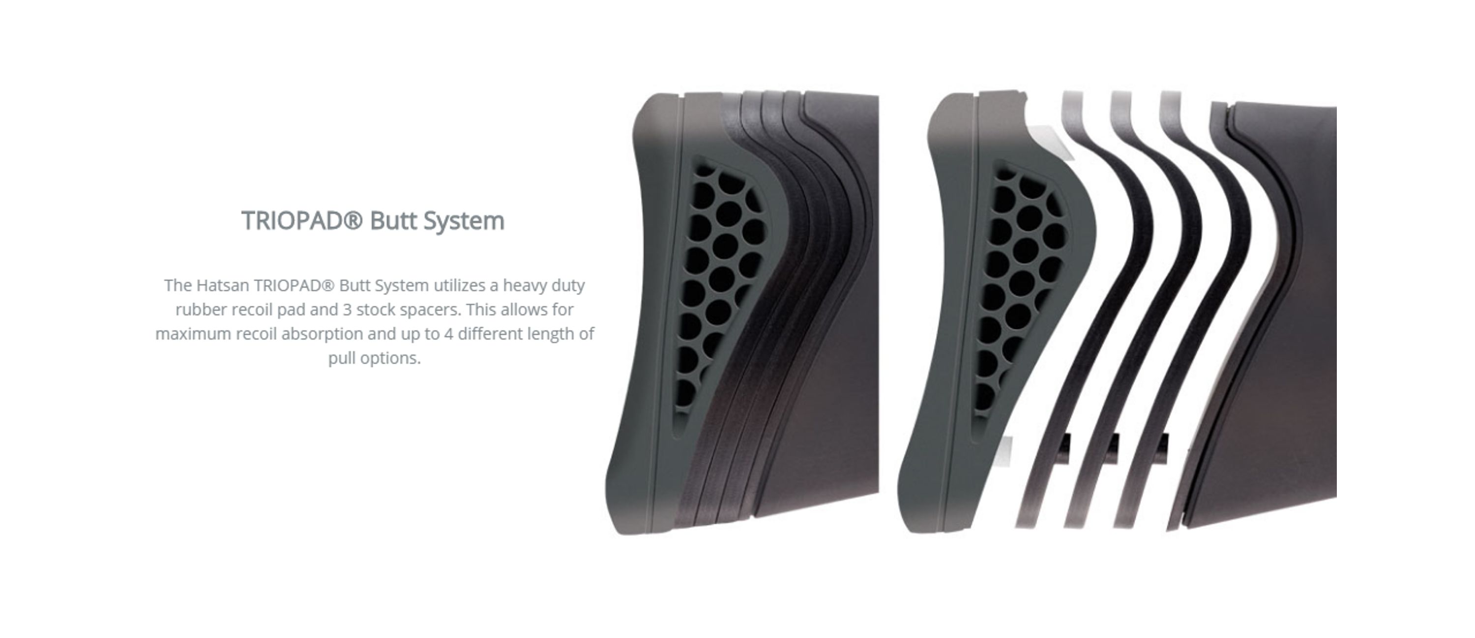 Viene con 3 espaciadores de stock TRIOPAD® para cambiar la longitud del tirón.