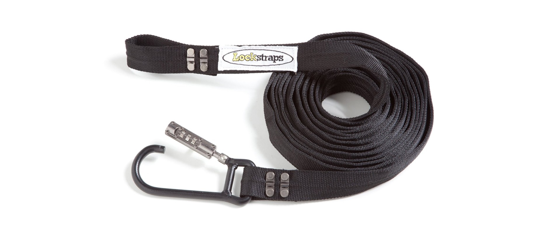 Correa de anclaje LOCKSTRAPS 301 de nylon reforzado con cable acerado 01 candado con seguro de combinación de acero largo total 7.3 metros.