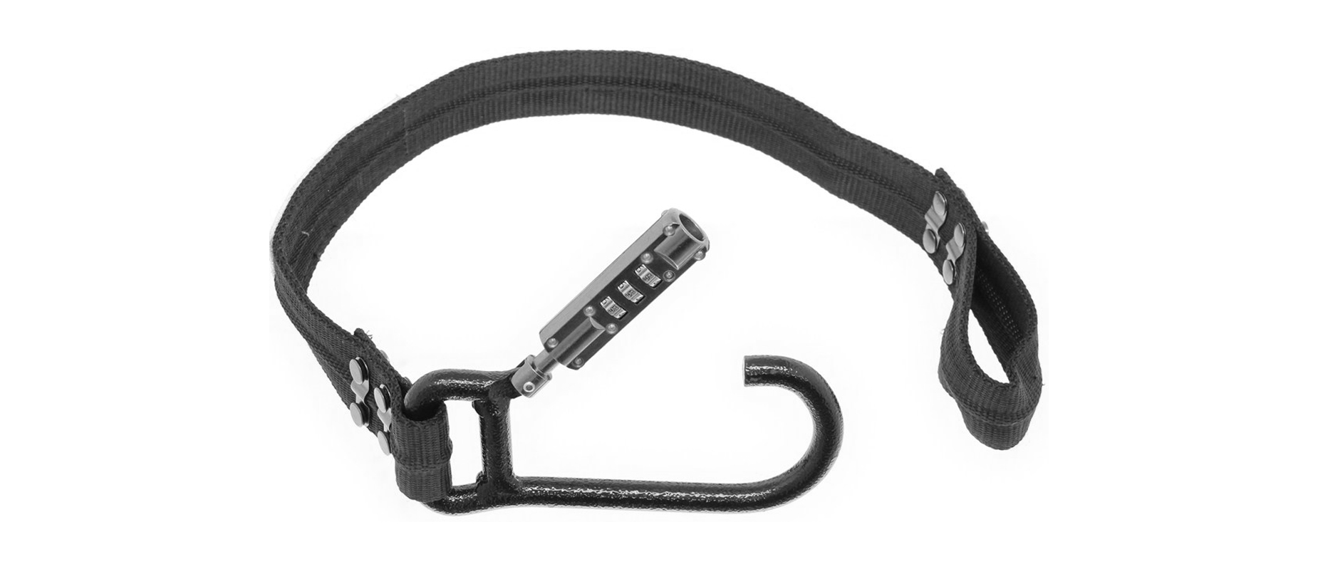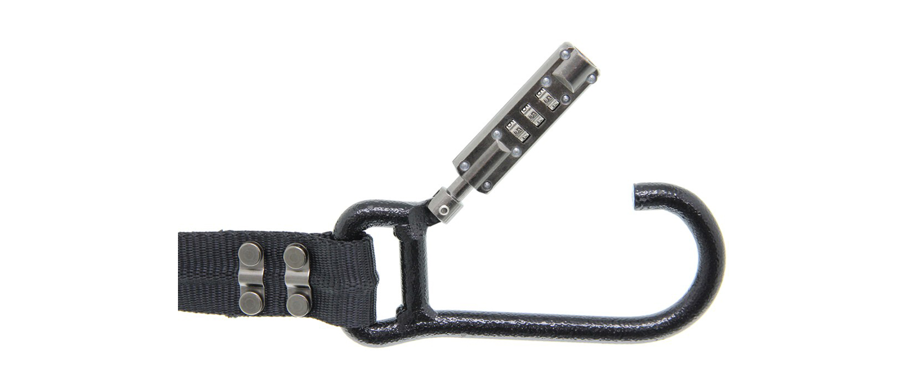 Correa multiusos LOCKSTRAPS 901 de nylon reforzado cable acerado 01 candado con seguro de combinación de acero largo total 60cm para asegurar motos o bicicletas.