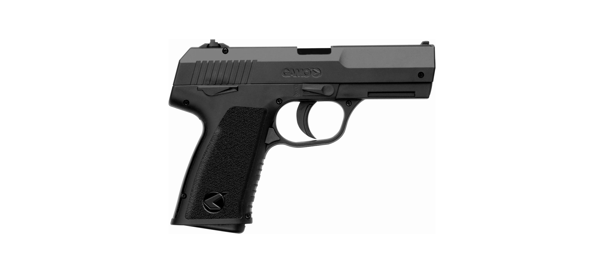 Pistola de aire CO2 GAMO PX-107 calibre 4.5 mm capacidad de 15 tiros velocidad de 125 m/s semiautomática acabado color negro y cacha sintética (España)