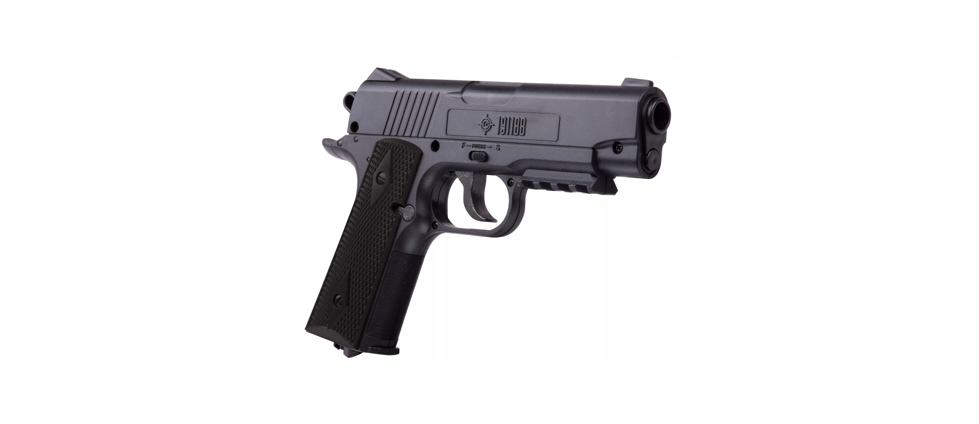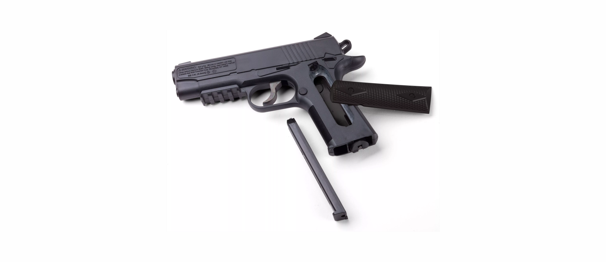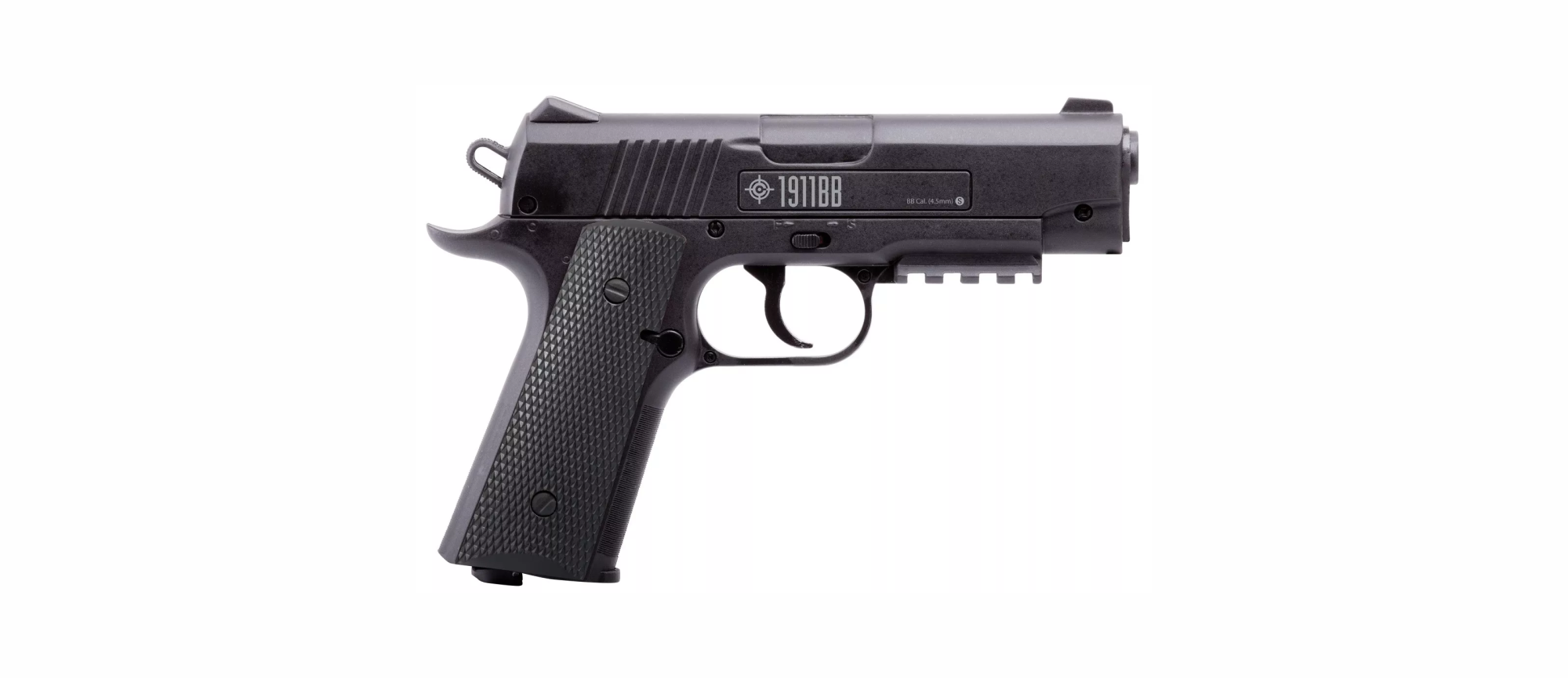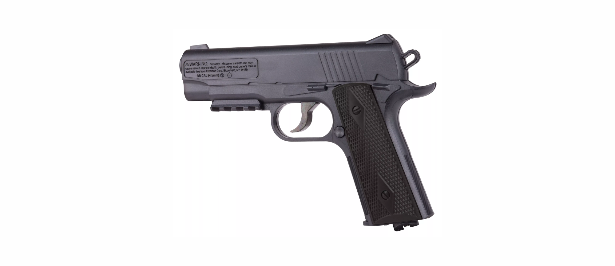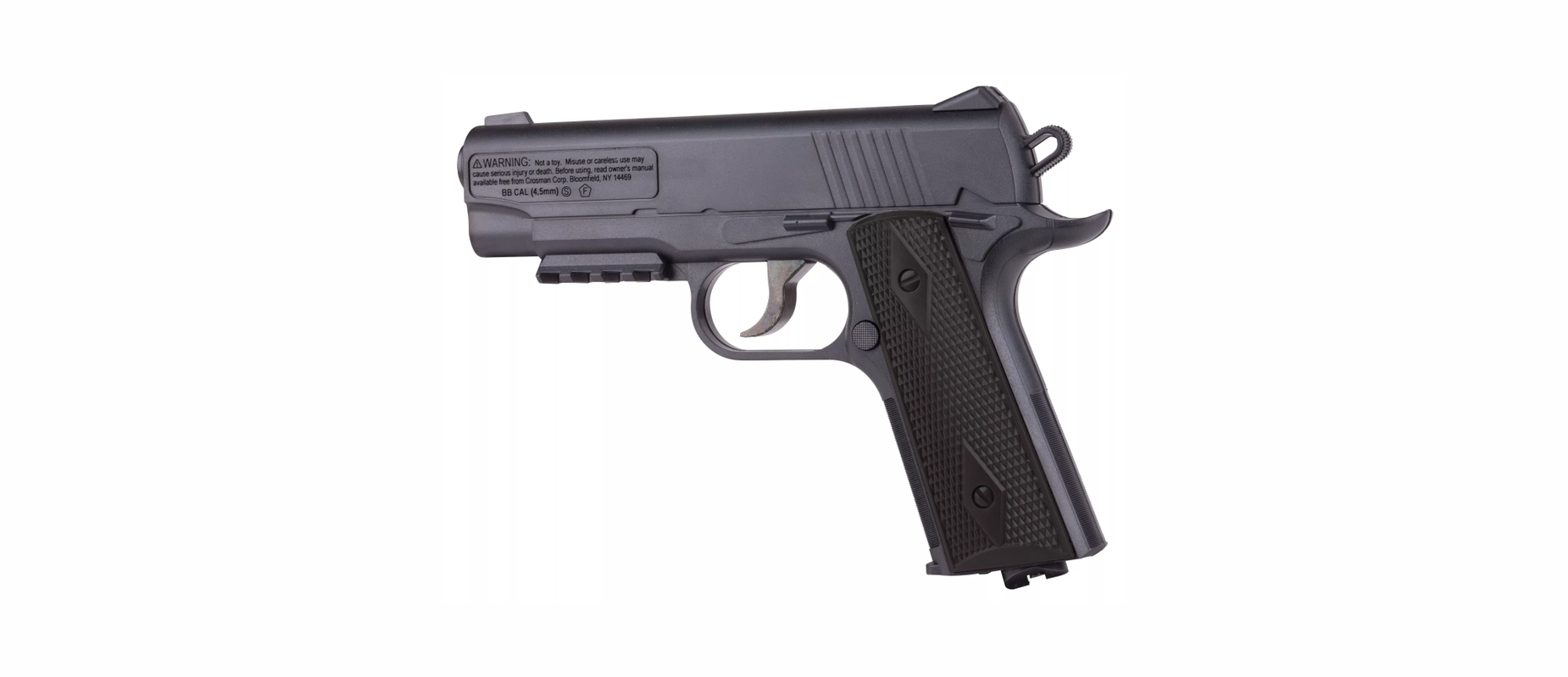Pistola de aire CROSMAN 1911BB calibre BB velocidad 146 m/s con sistema de semiautomático CO2 cacha plástica color negro cacerina de 20 tiros 40001 (USA)