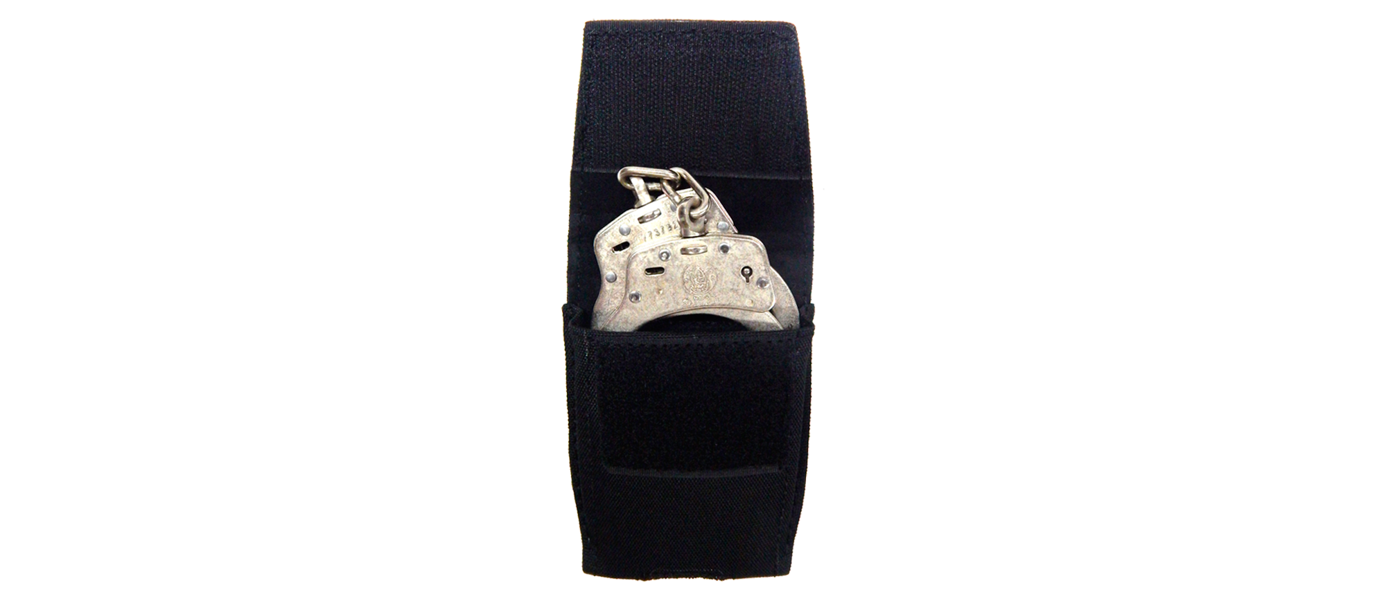 Porta grilletes de lona negra con sujeción a correa regulable (Nacional)
