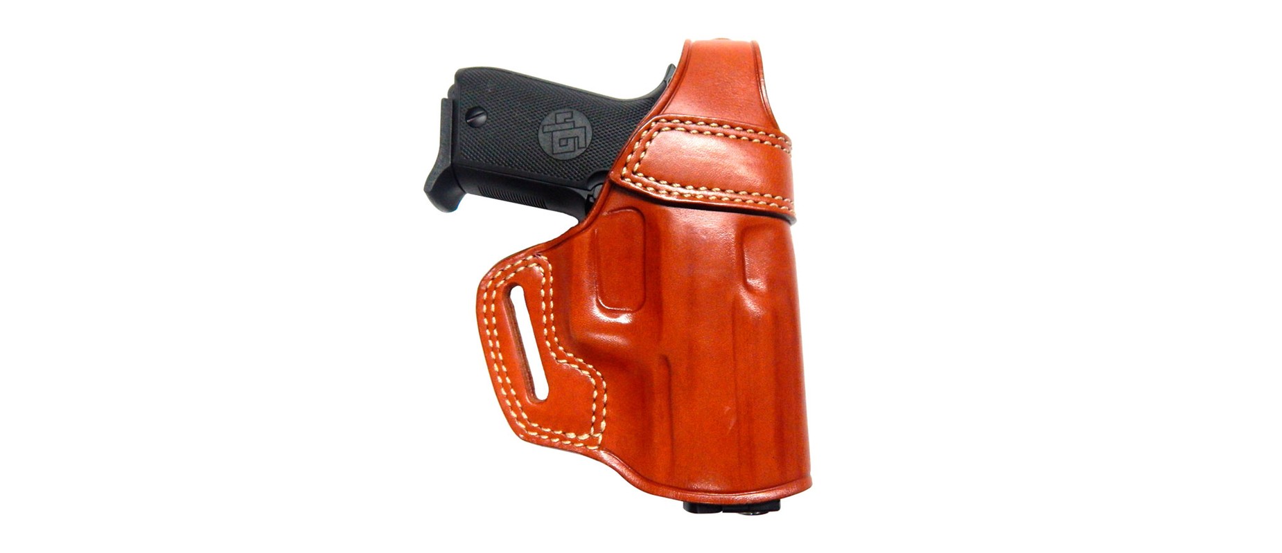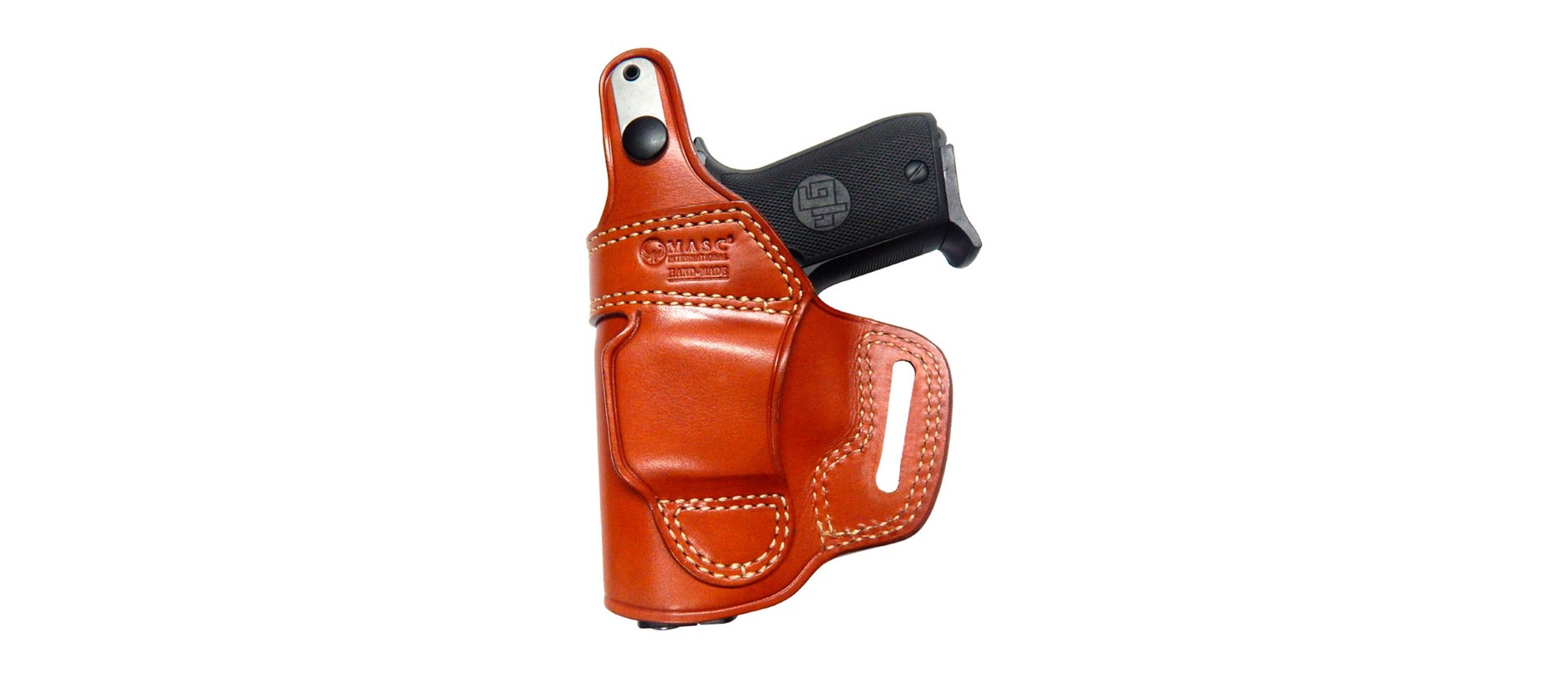 Funda para Pistola MASC GF-100 AFAK ( 1012 ) para CZ 75 P-07 DUTY de cuero color marrón tipo externa seguro ojal con broche sujecion a correa con ojal interno y otro tipo oreja (M8)