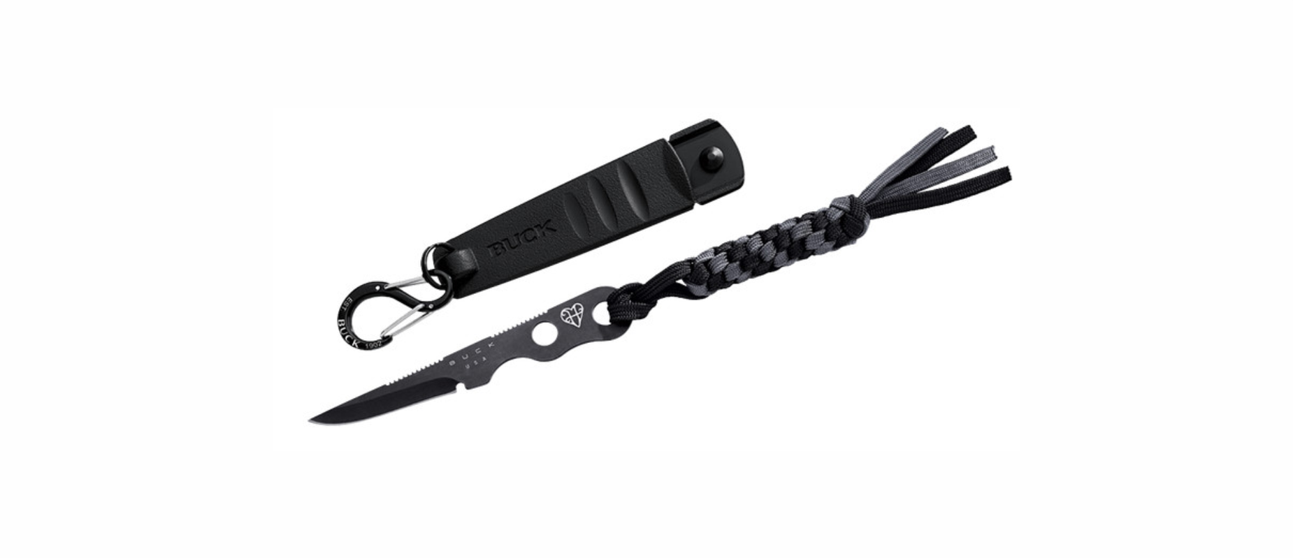 Cuchillo BUCK 860 SMIDGEN hoja de acero al carbono S30V vanadio acabado negro mate filo plano (4.8cm) mono pieza de 14.2gr incluye cuerda y funda de polímero negro con gancho 0860BKS-B (USA)