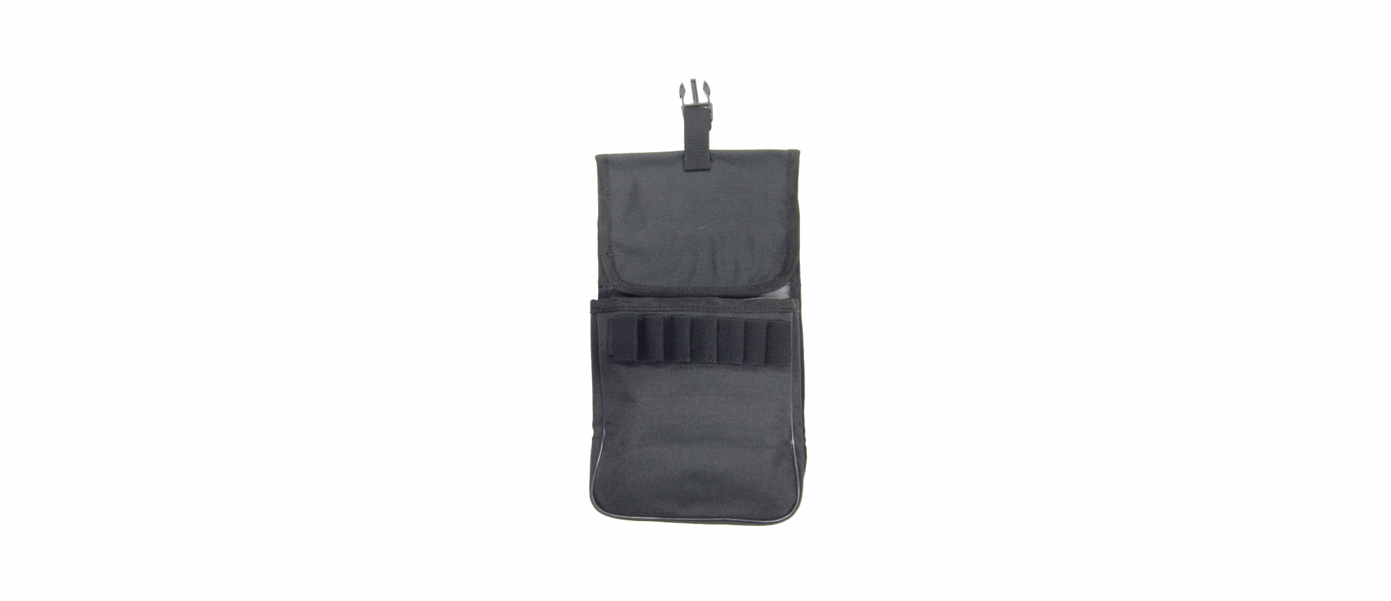 Bolsa para cartuchos VOODOO ROLL-UP SHOTGUN SHELL POUCH 15-0036 de lona color negro plegable cuando esta vacía con sujeción al cinturón incluye cinta para cintura 15-0036001000
