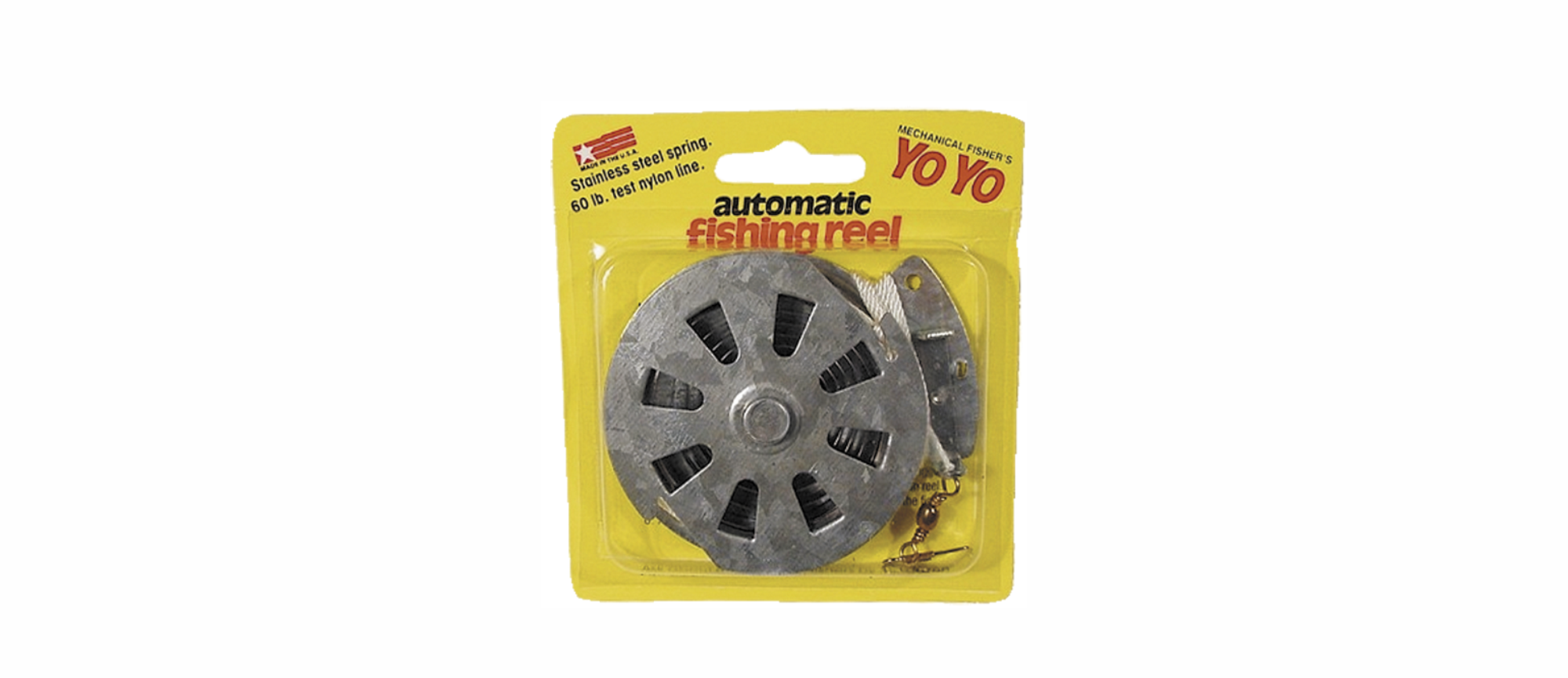 Carrete de pesca MAJOR SURPLUS & SURVIVAL YO YO 17-0468 de metal galvanizado con mecanismo de pesca automático soporta 60 libras incluye anzuelo 17-0468055000 12001