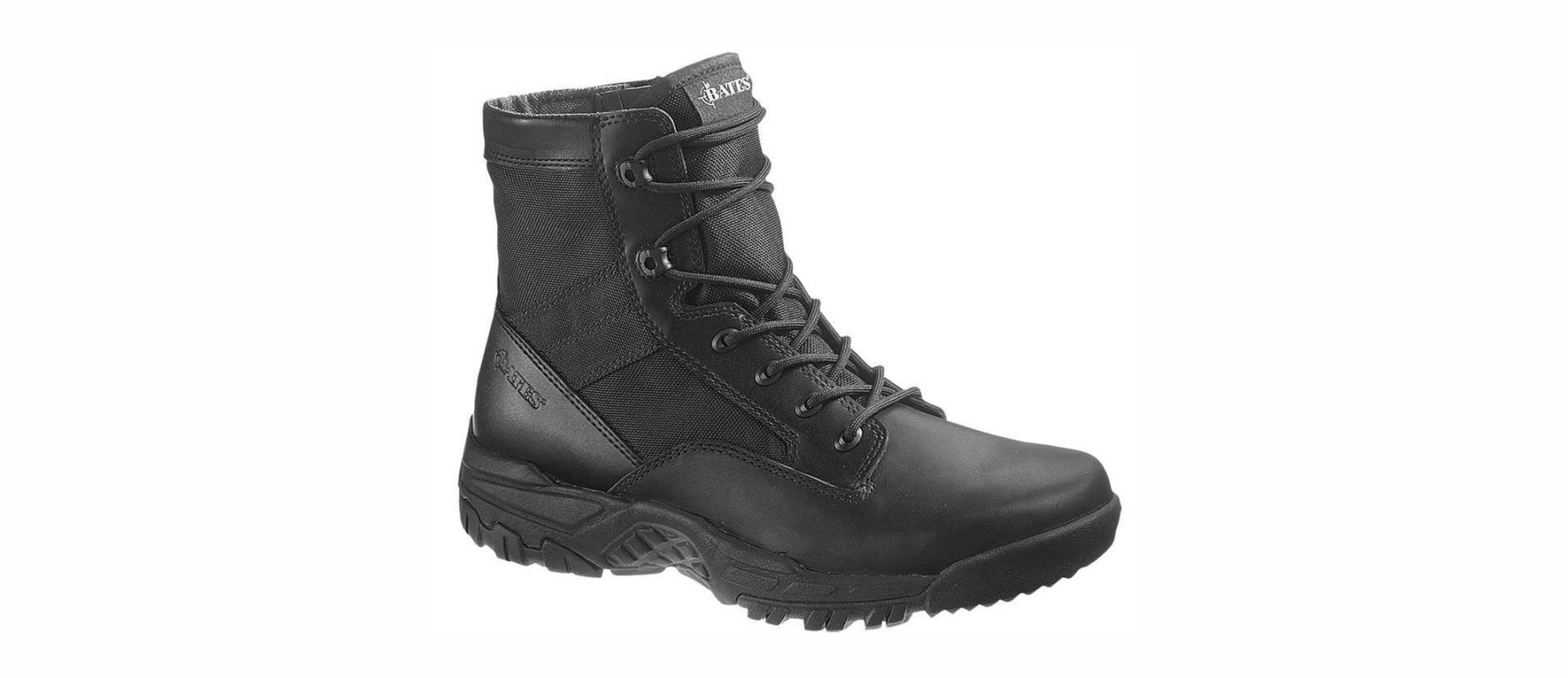 Botines BATES-6 SIDE ZIP Táctico de cuero negro y nylon, suela anti-deslizante, talla 8(41) hecho en materiales no metálicos indetectables en ambientes de seguridad electrónica E05162